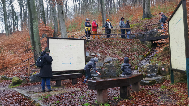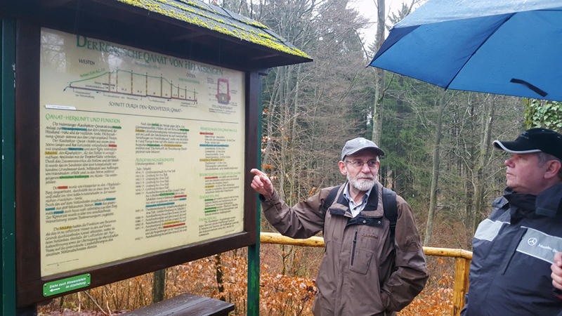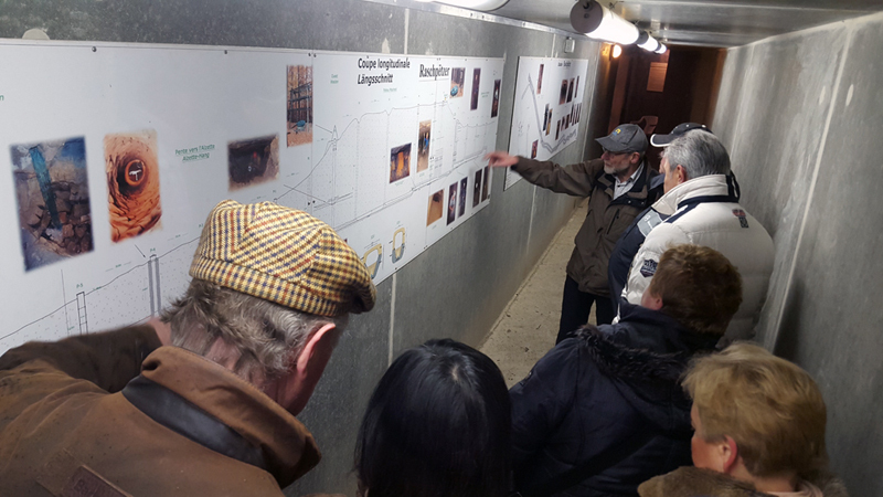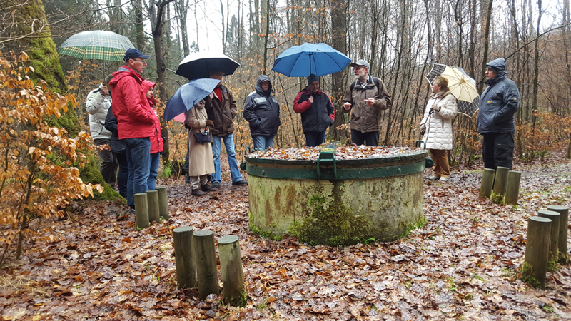 Unter der fachkundigen Führung eines ortskundigen Fremdenführers wurden die sogenannten „Raschpëtzer“ im Helmsinger Wald erkundet. Dies ist eine unterirdische Wasserleitung aus der Römerzeit, mit etwa 35 Schächten die mit einem 600m langen Gang und Nebengängen verbunden ist. Dort wurde das Grundwasser aufgefangen und zu einer nahen römischen Siedlung geführt.
