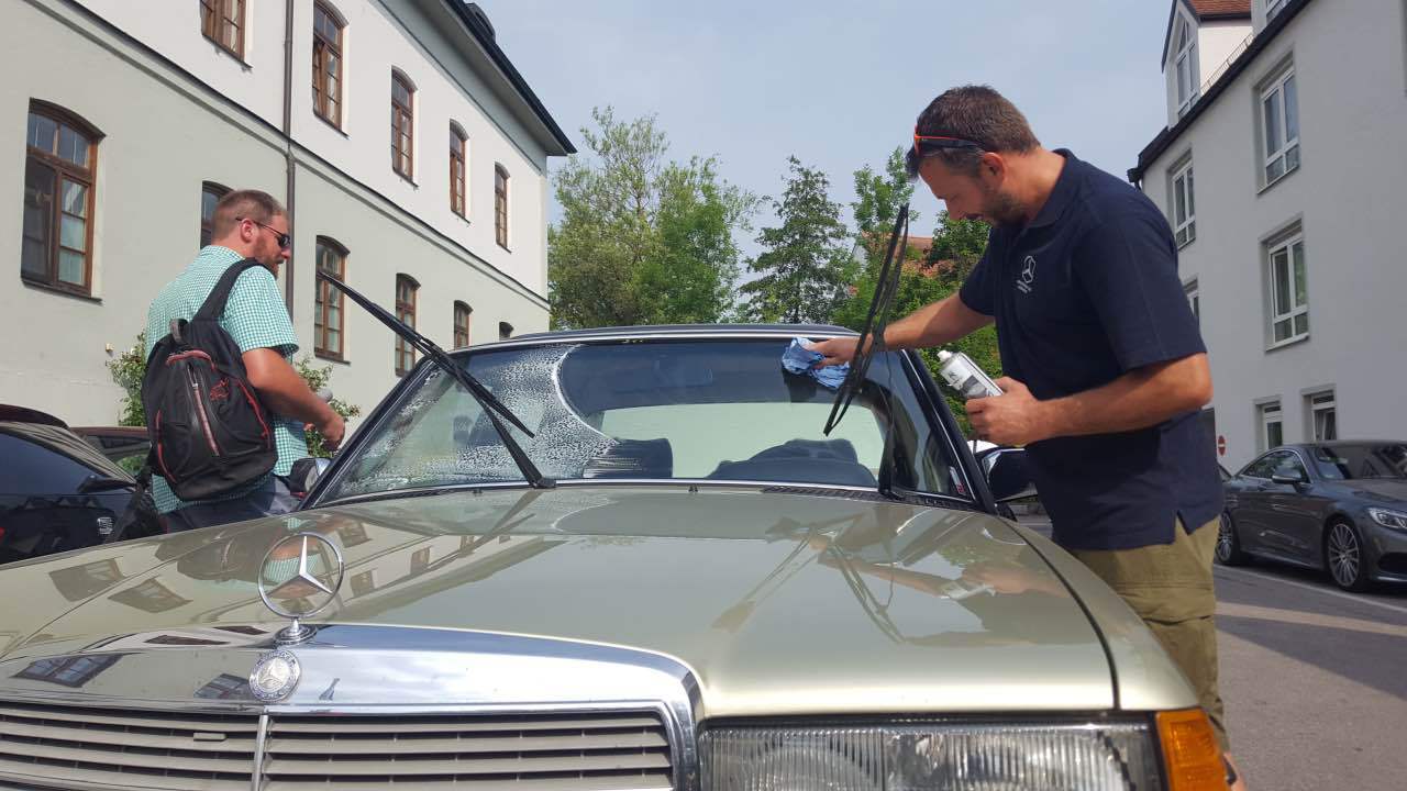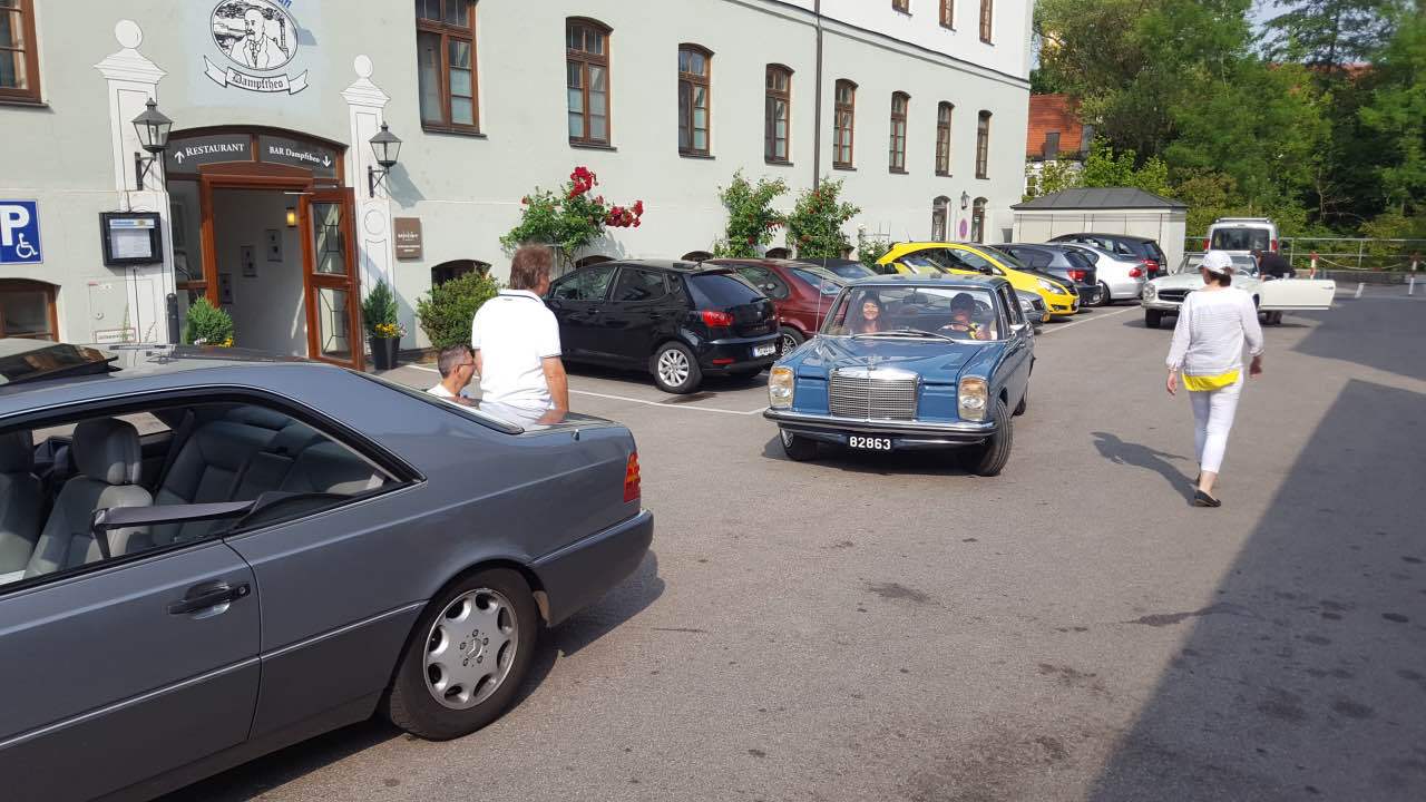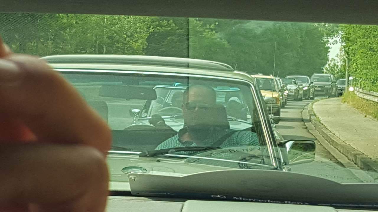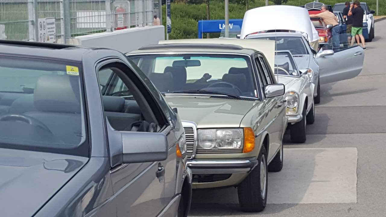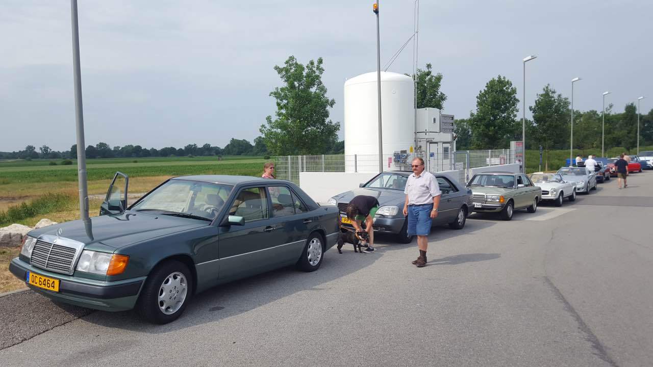 Das Thermometer stieg auf 35 Grad als wir am Mittwoch den 21 Juni auf der A8 zwischen Pforzheim und Stuttgart mit unseren 107 SL unterwegs waren um an der <Bier – Kult- Tour >teilzunehmen – als ein Clubmitglied der mir mit seinem Wagen folgte telefonisch mitteilte dass er Rauch aus meinem 107er sehen würde Wir steuerten den nächsten Rastplatz an und tatsächlich sahen wir eine Oel-Wasser Mischung auf den glühend heissen Auspuff tropfen was die Ursache der Rauchentwickelung verursachte. Ein hilfsbereiter Mann der sich zu uns gesellte beschrieb uns den Weg zur nächsten Mercedes – Benz Garage. Dort wurden wir sehr freundlich empfangen und mit Wasser und Café versorgt. Die IG Metall Gewerkschaft hatte zu diesem Zeitpunkt zum Streik aufgerufen daher war fast die ganze Belegschaft abwesend . Bis auf den mitte 50jährigen Chef KFZ Mechaniker der das Problem sofort erkannte und versprach uns Hilfe .Auf der Hebebühne sah man unverkennbar Oel aus dem automatischen Getriebe tropfen um sich mit Kondenswasser der Klimaanlage zu vermischen. Uns wurde erklärt dass viel zu viel Oel im Getriebe sei -durch die enorme Hitze sich ausgedehnt habe und durch den Einfüllstutzen einen Ausweg gesucht habe. Nicht auszudenken wenn Feuer entstanden wäre was bei dieser Hitze durchaus möglich gewesen wäre. Nachdem das überflüssige Oel abgepumpt war ,konnten wir unsere Fahrt fortsetzen. Mit diesem Bericht möchte ich dem kopetenten Mechaniker (der , wie er mir verriet mit den 107er gross geworden ist )meinen ausdrücklichen Dank aussprechen und die Mercedes – Benz Niederlassung von 71229 Leonberg Brückenbachstrasse 42 sehr empfehlen die sich bei mir mit ihrer Freundlichkeit – Sachkenntnis – und Hilfsbereitschaft eingeprägt haben.
