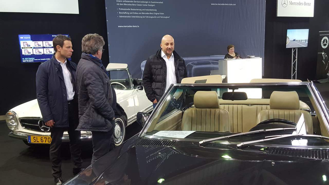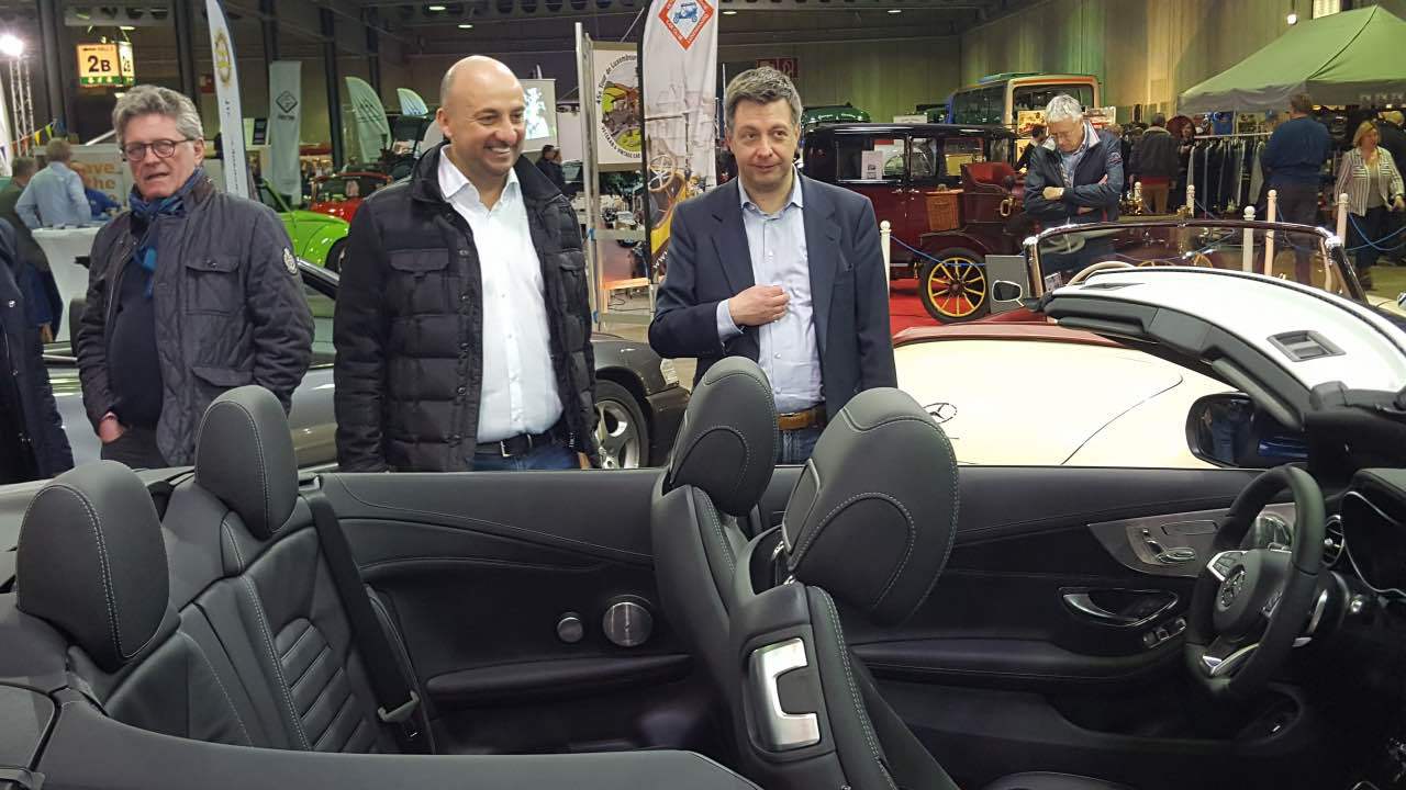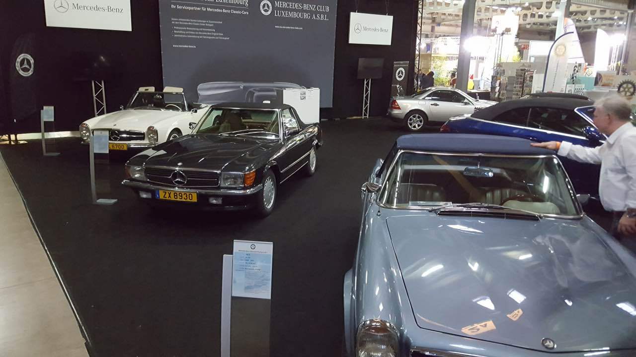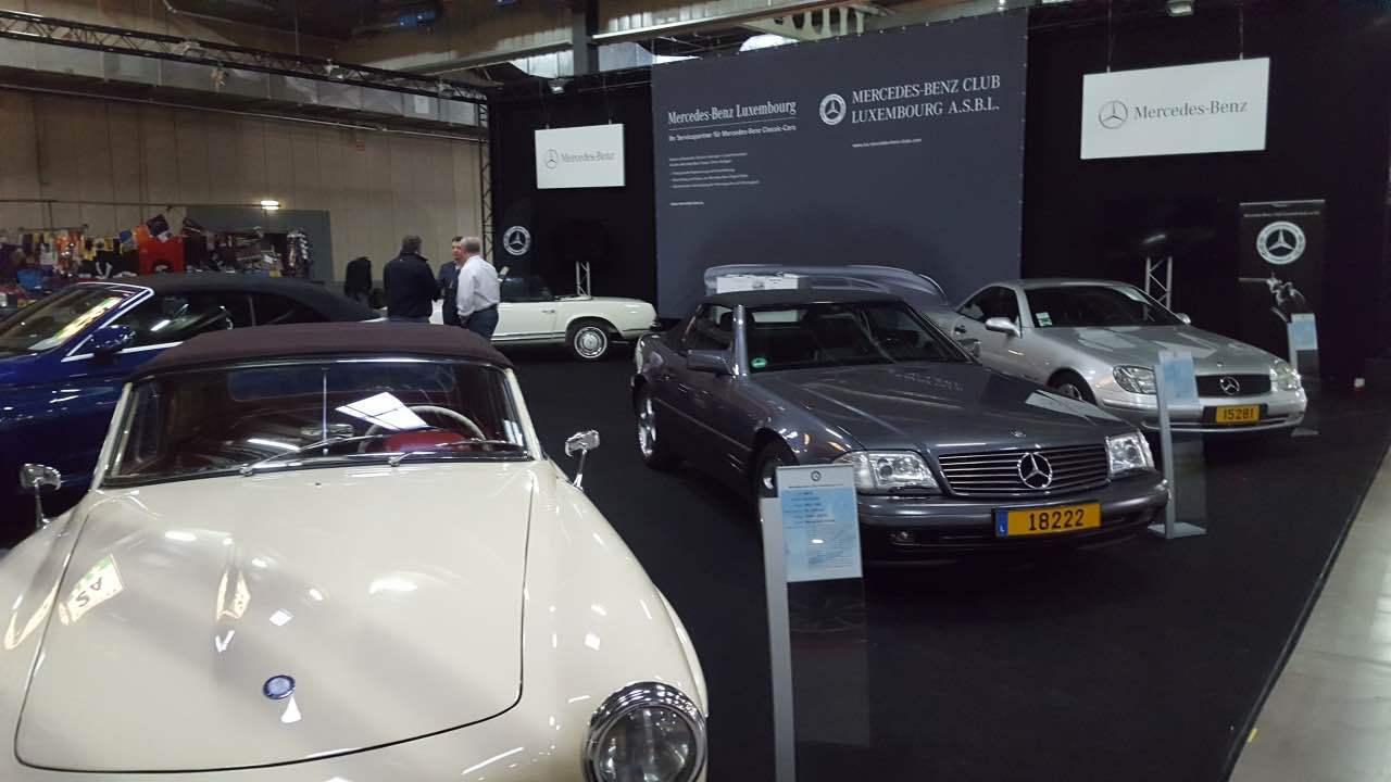Am 11. und 12. März 2017 fand der von der “Letzebuerger Oldtimer Federatioun” organisierte “Autojumble” in den Messehallen auf Kirchberg statt. Am Samstag und am Sonntag waren die Messehallen auf Kirchberg gut gefüllt: zahlreiche Enthusiasten der Luxemburger Oldtimerszene hatten den Weg zur Luxexpo gefunden. Der Mercedes-Benz Club Luxembourg stellte in diesem Jahr das Thema „Cabriolets“ vor. Neben dem ganz neuen C-Klasse Cabriolet in einer herrlichen Blaufarbe, das von Mercedes-Benz Luxembourg zur Verfügung gestellt wurde, standen Clubfahrzeuge aus den 60er, 70er, 80er und 90er Jahren. Zusammen mit einem 190 SL waren zwei Pagoden ausgestellt, ein 107er SL (der auf der Messe verkauft wurde), ein 129er SL sowie ein SLK der ersten Baureihe. Die ausgestellten Fahrzeuge waren genauestens beschrieben mit ihrer jeweiligen interessanten Geschichte. Viele Besucher des Clubstandes bewunderten den ausnahmslos ausgezeichneten Zustand der Fahrzeuge. An den beiden Ausstellungstagen betreuen Fachmitarbeiter von Mercedes-Benz Luxembourg die Anfragen der Besucher zum neuen C-Cabriolet. An den Bildschirmen die auf der Rückwand des Clubstandes befestigt waren, wurden Filme aus der Entwicklung dieser verschiedenen Baureihen gezeigt, sowie Auszüge von den Clubausfahrten im vergangenen Jahr. Wie jedes Jahr stattete auch der Wirtschaftsminister und bekennender Oldtimer-Fan Etienne Schneider unserem Messestand einen längeren Besuch ab.