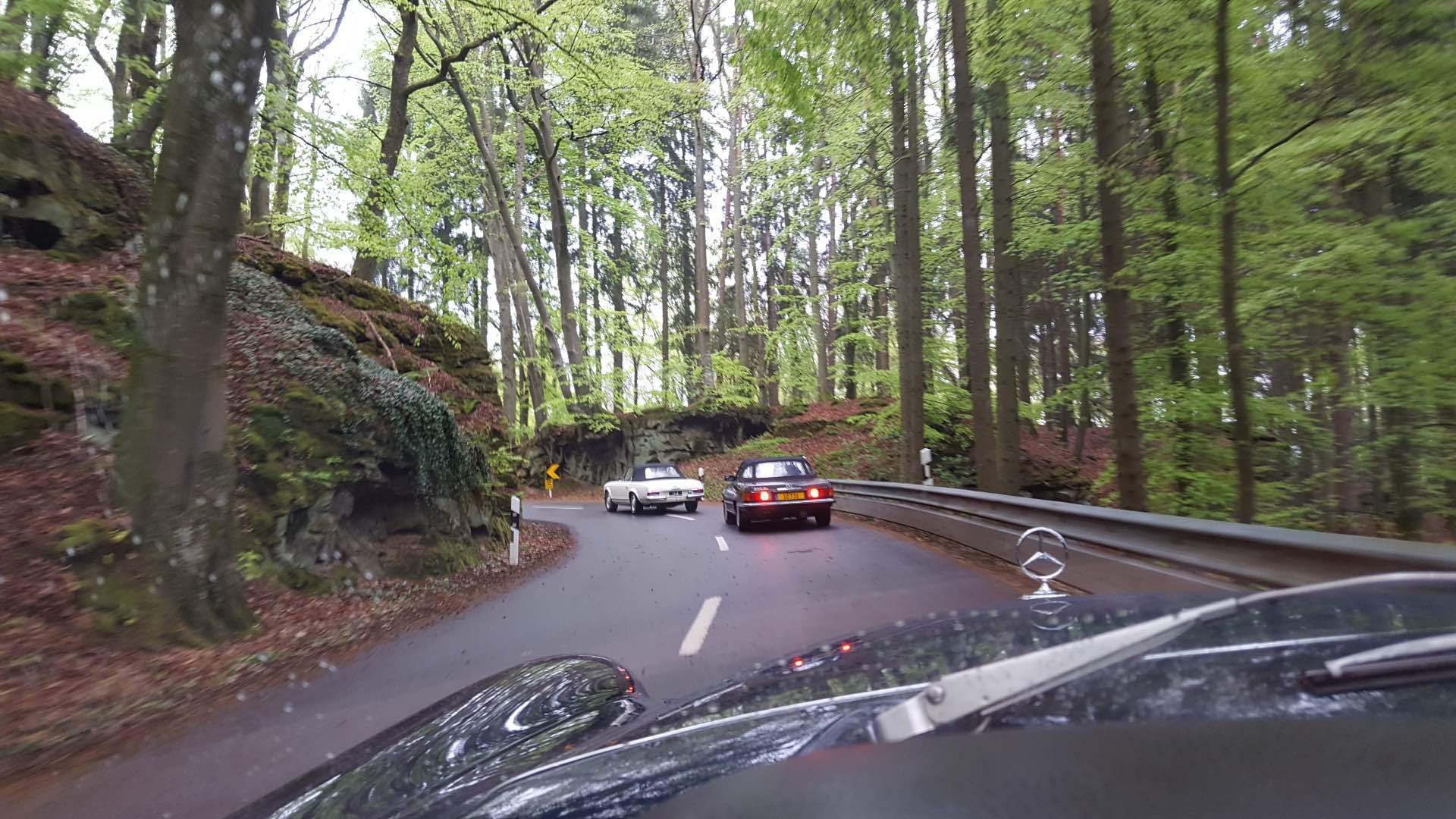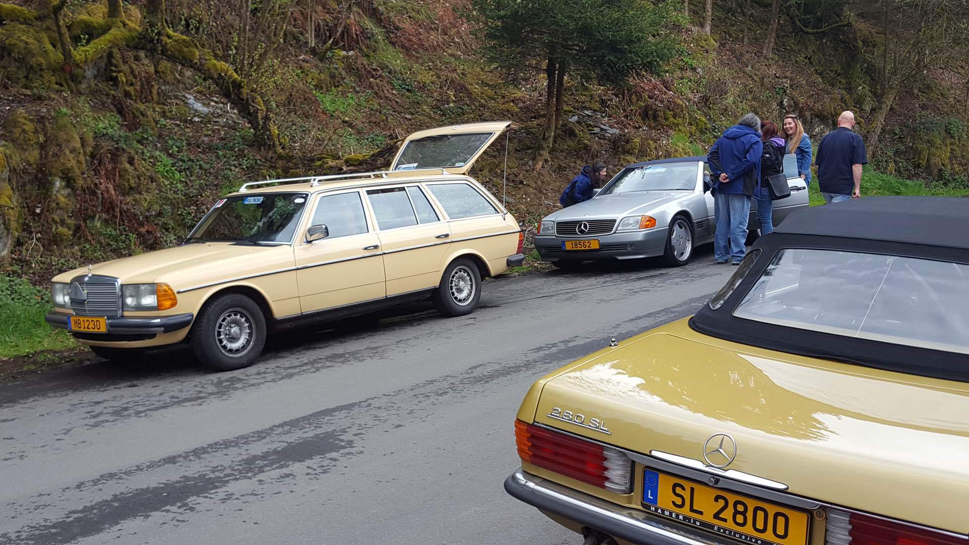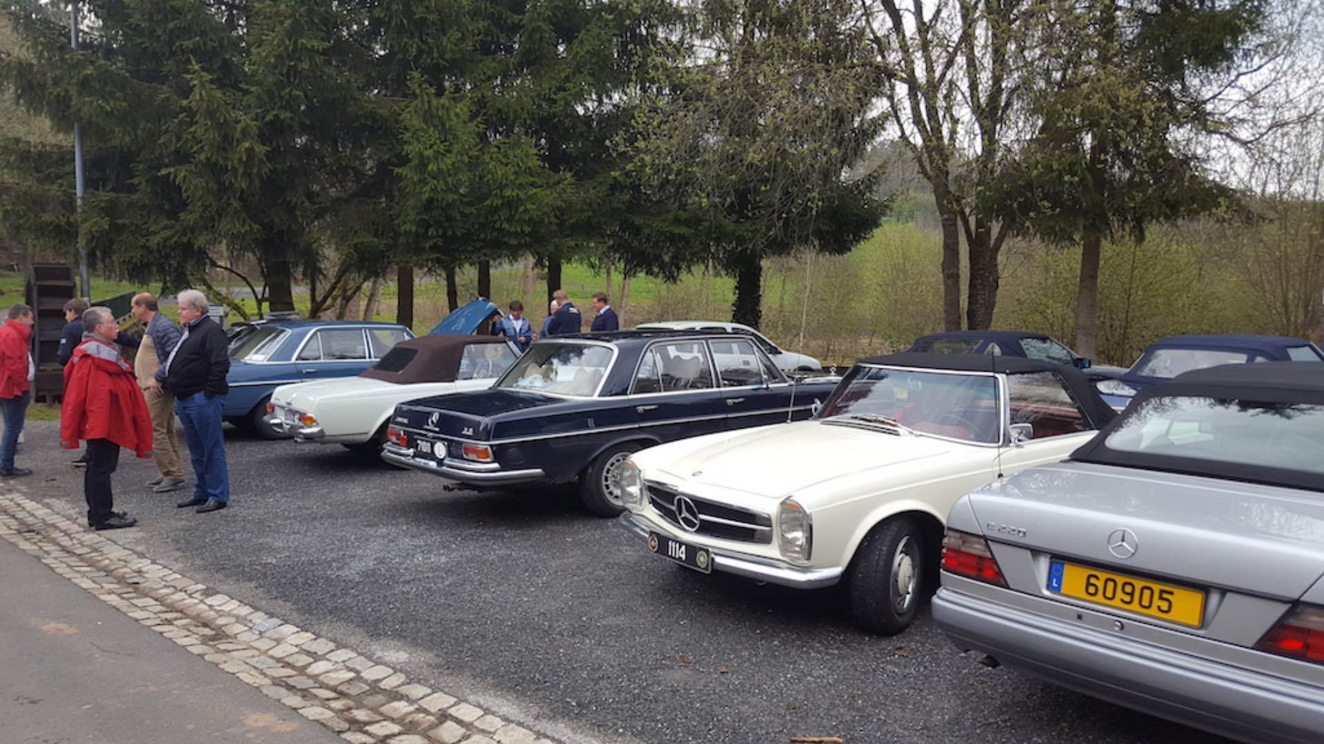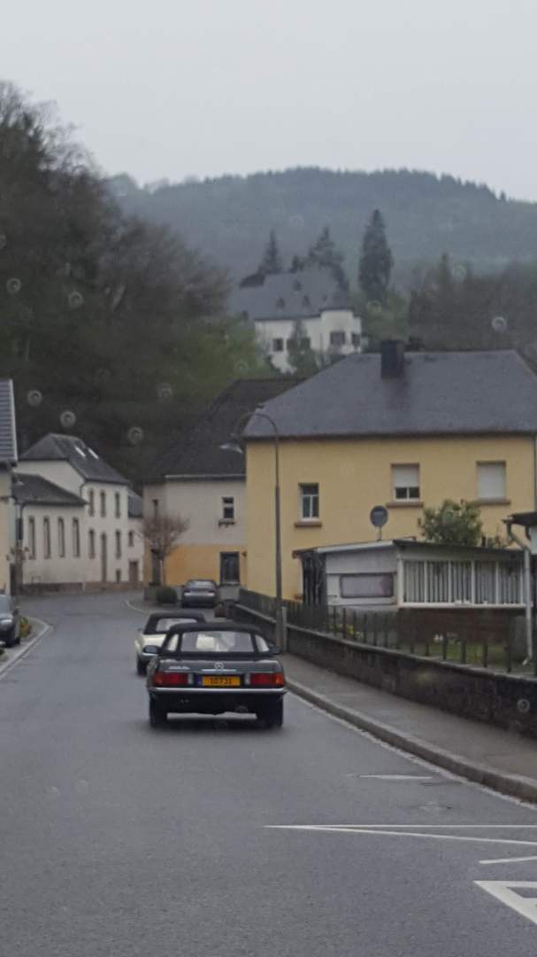 «Endlich!» mag mancher von uns gedacht haben als wir am Sonntag, den 7. Mai unseren klassischen Sternenträger aus der Garage geholt haben um an der diesjährigen Fréijorstour teilzunehmen. Nach 7 langen Monaten der Winterpause, nur durch die Jahresabschlussfeier, die Generalversammlung und den Trëppeltour unterbrochen, war es nun an der Zeit um die erste gemeinsame Fahrt der Saison zu unternehmen. Mit gefülltem Tank, gechecktem Ölstand, aufgefüllter Kühlflüssigkeit und korrekt aufgepumptem Reifen trafen nach und nach die 20 angemeldeten Fahrzeuge am Treffpunkt in Walferdingen ein, wo Kaffee und Frühstücksgebäck für die nötige Stärkung der Teilnehmer sorgten. Trotz schlechter Wetterprognose waren alle gut gelaunt und erfreut sich wiederzutreffen, und so war es nicht verwunderlich, dass niemand es dem Wettergott übel nahm, dass schon kurz nach dem Start leichter Nieselregen dafür sorgte, dass unsere blank polierten Wagen bald mit einer einheitlichen erdfarbenen Sprenkelung vom Spritzwasser überzogen wurden. Nach 82 kurvenreichen Kilometern erreichten wir über größtenteils ruhige und touristisch schöne Straßen das Öslinger Dorf Asselborn, das eigentliche Ziel unserer Ausfahrt. In der tausendjährigen (!) Asselborner Mühle, die im tiefen Tal der Tratterbaach, in einem Naturreservat wo der seltene schwarze Storch zuhause ist, eingebettet liegt, wurden wir in romantischer Einrichtung und bei willkommenem Kaminfeuer mit einem köstlichen Mittagessen verwöhnt. (Weitere Informationen über die Mühle unter: http:// www.hotelvieuxmoulin.lu/Doc/Brochure_ De.pdf ) Nach den kulinarischen Köstlichkeiten stand anschließend ein kultureller Genuss mit aktiver künstlerischer Betätigung auf dem Programm. Der Besuch des Asselborner Glaskünstlers Robert Emeringer in seinem Atelier beschränkte sich nicht aufs Zuhören und Anschauen, sondern jeder konnte seine artistischen Talente bei der Gestaltung eines Mercedessterns auf Glas unter Beweis stellen. Wir sind auf das Resultat gespannt, wenn nach etlicher Zeit der Brennvorgang im Schmelzofen abgeschlossen ist. Das Wetter hatte sich in der Zwischenzeit gebessert und zaghafte Sonnenstrahlen zeichneten schemenhafte Schatten auf den Boden, als der Glasspezialist unter freiem Himmel eine Darbietung seiner Kunst gab, wobei er 1000 Grad heißes flüssiges Glas in eine Sandform goss um eine Skulptur zu schaffen. Auch hier war das Ergebnis nicht sofort zu sehen, denn der Abkühlvorgang dauert bei solchen Kunstwerken mehrere Tage! Dieser sehr interessante Tag endete nach weiteren 91 km im Restaurant Juegdschlass in Bereldingen wo wir beim gemeinschaftlichen Abendessen diese von Jean-François Zimmer organisierte Tour, und dem an dieser Stelle unser aller Dank ausgesprochen sei, Revue passieren lassen.