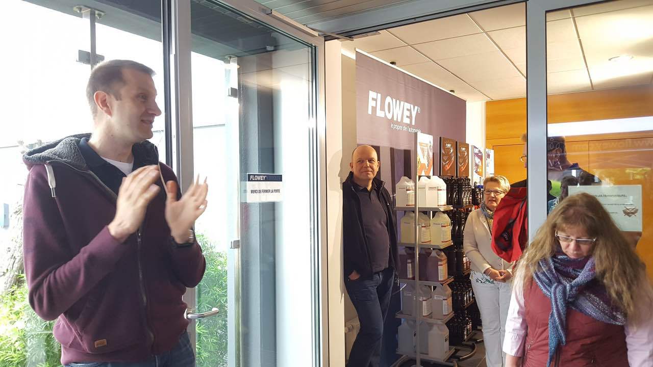 Am Sonntag, dem 10. September 2017, trafen sich die Mitglieder des Mercedes-Benz Club Luxembourg in der Industriezone „Klengbousbierg“ in Bissen. Als Auftakt zur diesjährigen „Rentrées’tour“ nach den Sommerferien stand eine Besichtigung der Produktionsanlagen der Firma Flowey auf dem Programm. Flowey ist international bekannt durch die Herstellung der zur Reinigung und Pflege von Fahrzeugen dienenden Produkte, die man als Einzelkunde in vielen Fachgeschäften kaufen kann. Daneben stellt die Firma ebenfalls Produkte für Autowaschanlagen her. Unter der fachkundigen Führung der Besitzer wurden wir in die Herstellung eingeweiht und konnten die Anlagen sowie das Lager besichtigen. Das von Paul Origer vorbereitete Roadbook führte anschließend durch Öslinger Landschaften und gegen Mittag erreichten wir Pommerloch, wo das Mittagessen aufgetischt wurde. Am Nachmittag fuhren wir in Richtung Süden des Landes. Angekommen im Fond-de-Gras besichtigten wir dort die Eisenbahnhallen des „Train 1900“ und wurden über die Geschichte und die Aktivitäten der Organisation unterrichtet, die sich um den Erhalt der Anlagen und Maschinen kümmert.