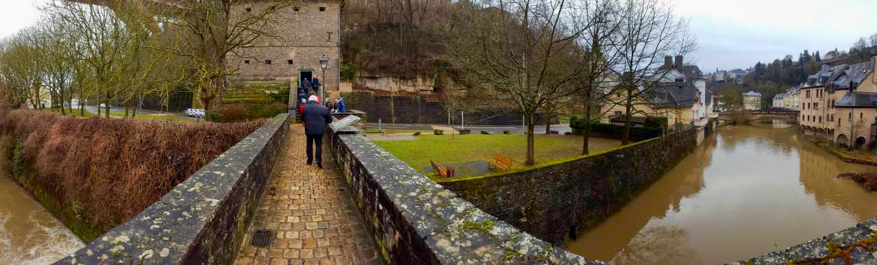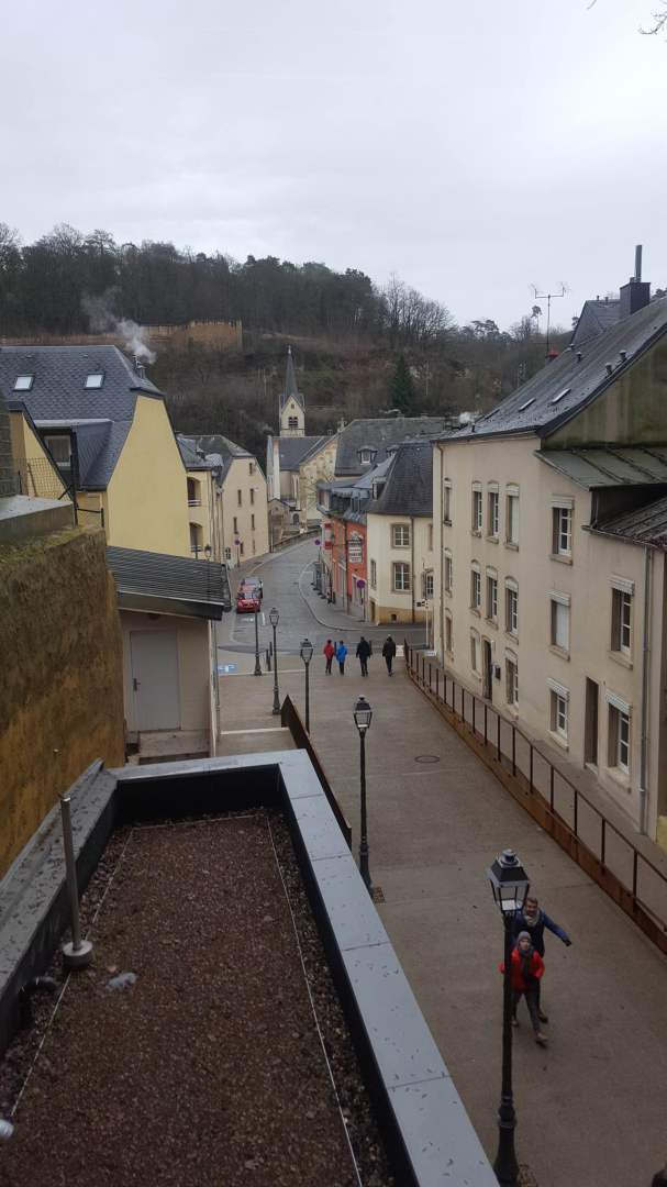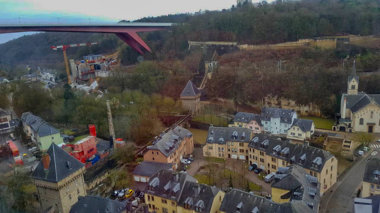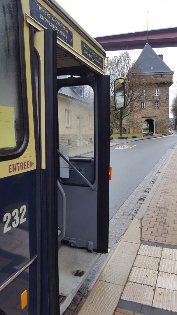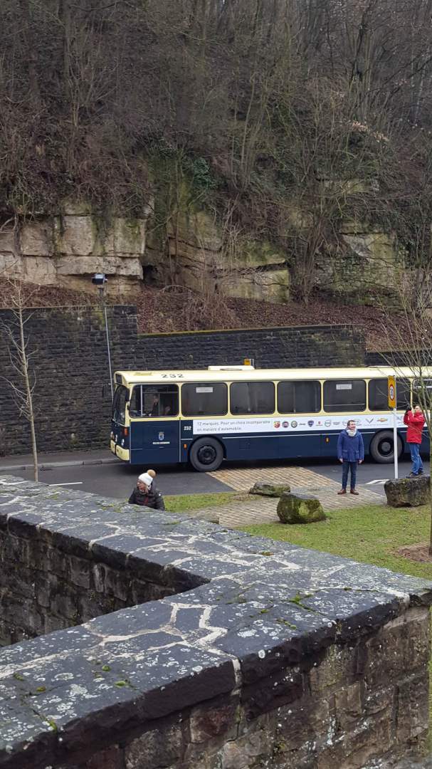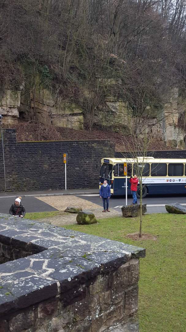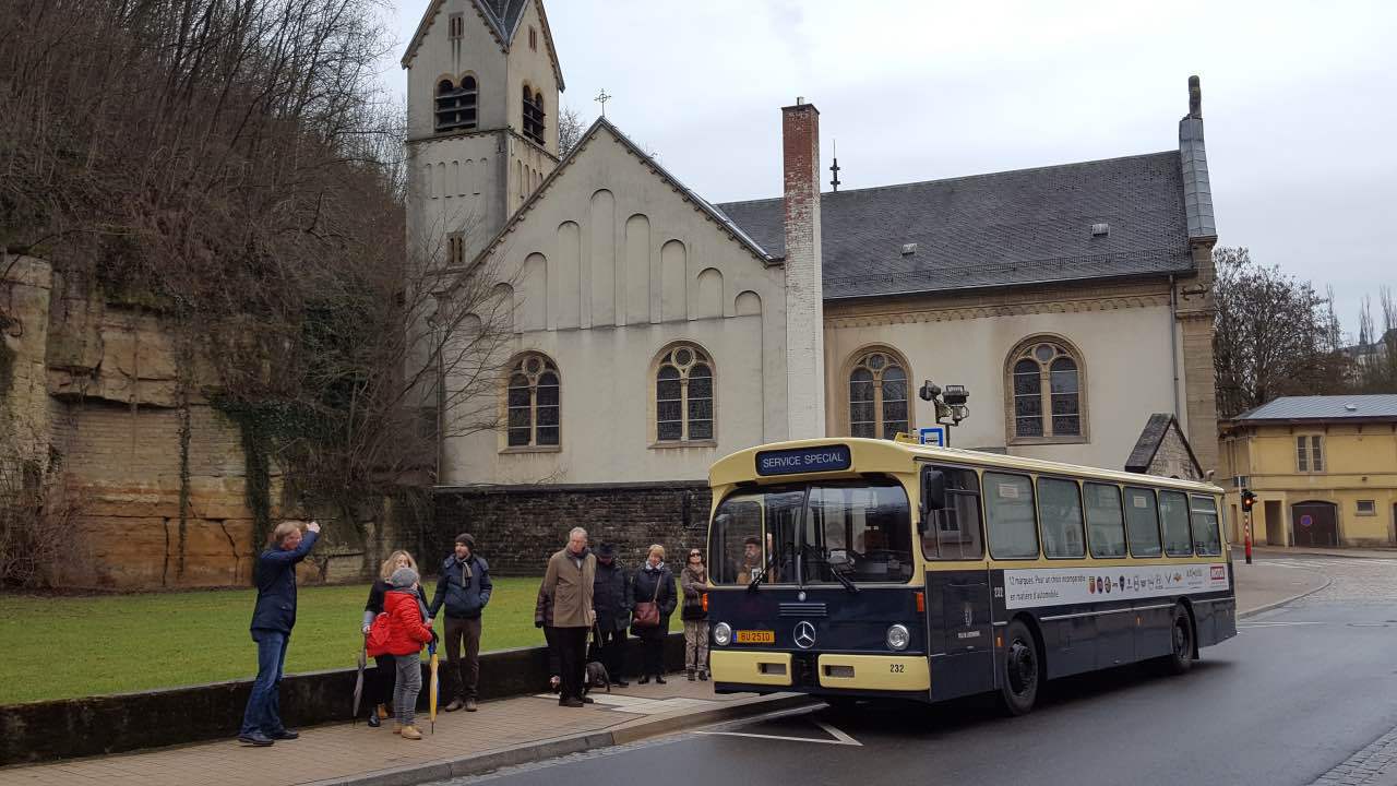 Ausgangspunkt dieser mehr kulturellen als sportlichen Tour war die Place de la Constitution wo die „Gëlle Fra“ von ihrem Obelisken aus die Stadt und unser frühmorgentliches Treiben überwachte. Nach dem obligaten Café-Croissant wurden wir – noblesse oblige – von einem historischen „Ale Stater Bus“ der Baureihe Mercedes Typ O305 zum Pfaffenthal chauffiert. Im alten Befestigungsturm aus der Vaubanzeit erfuhren wir anlässlich einer Filmprojektion, wie sich dieses Viertel seit der ersten Besiedlung in der Römerzeit über die mittelalterlichen Klosteranlagen zu dem späteren Arbeiter- und Kleinhandwerkerviertel zum aktuellen quirligen Stadtteil entwickelt hat.