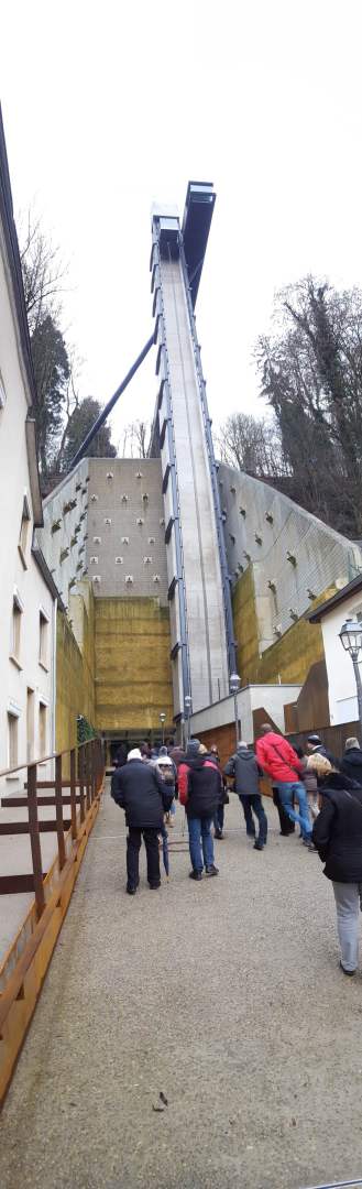 Mit einer letzten Fahrt im Aufzug, dieses Mal mit dem in den Fels gehauenen Heilig-Geist-Aufzug ging es dann wieder hinauf in die Oberstadt zu unseren im Parking abgestellten Autos.
