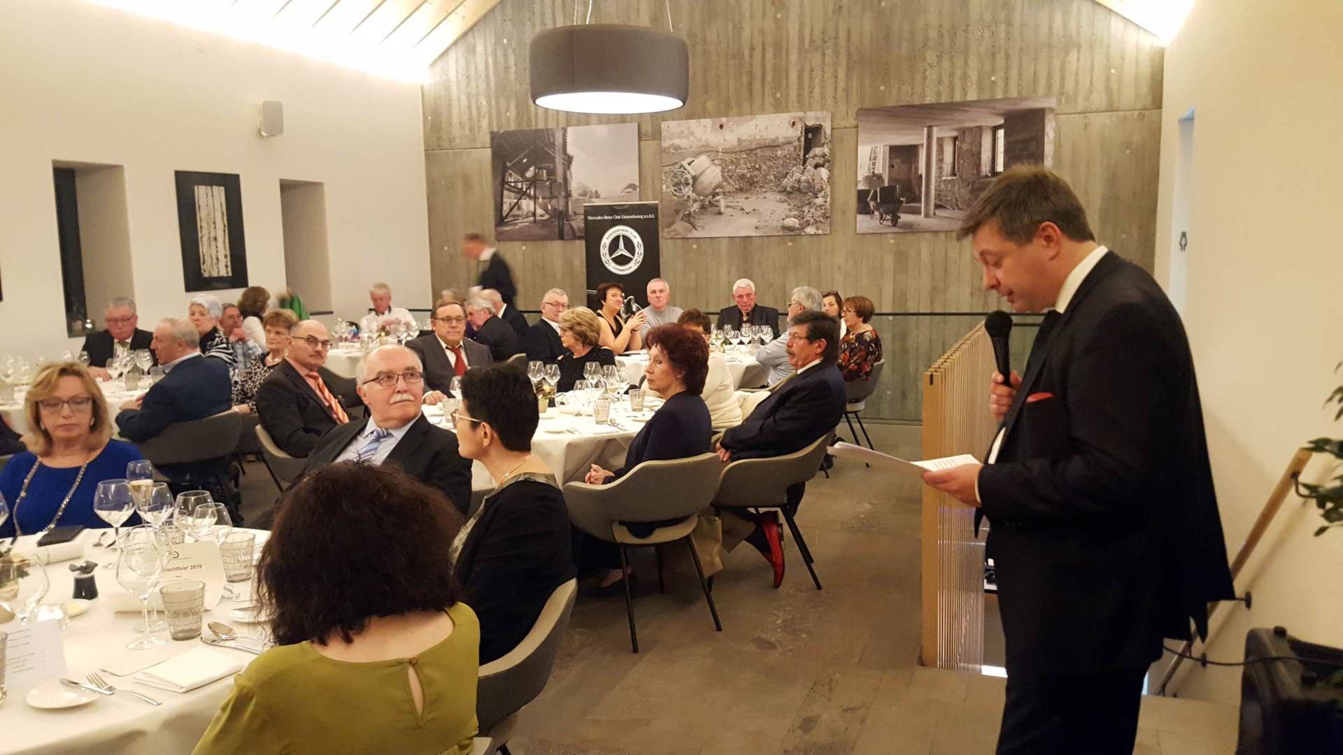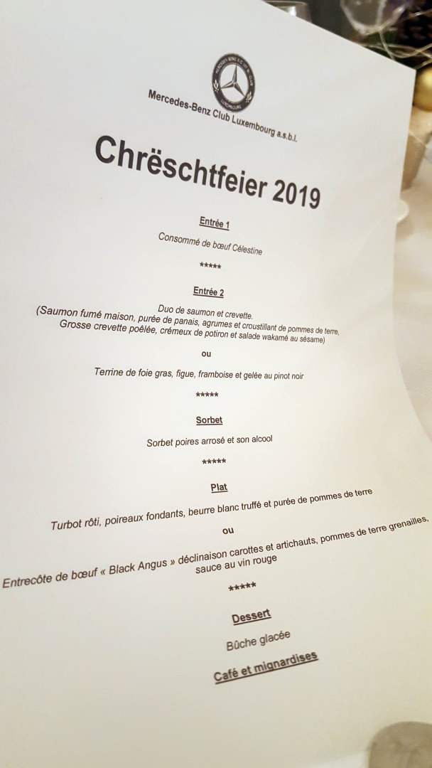 Am 14. Dezember 2019 fanden sich die Mitglieder des Mercedes-Benz Club Luxembourg zur der traditionnelllen Weihnachtsfeier ein. Wie in den letzten 3 Jahren fand das Treffen wieder im Restaurant „Stafelter“ in Walferdange statt. Nach dem vom Club gesponsorten Aperitif begrüsste der Präsident des MBCL, Jean-François Zimmer, die 61 Mitglieder, die an der Feier teilnahmen, und besonders den Ehrenpräsidenten des Clubs Justin Mangen. Er freute sich, dass auch mehrere Neumitglieder an der Weihnachtsfeier teilnahmen und begrüsste sie herzlich.