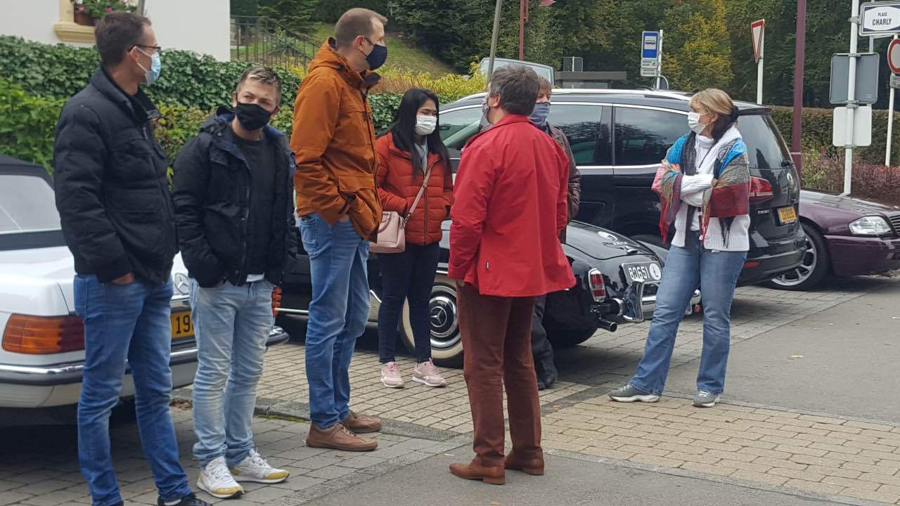 Nach einer interessanten und gut recher- chierten Einführung in die Geschichte des „Charli“, gab der Organisator das Startzei- chen und die Kolonne folgte der Route des „Charli“. Aus verständlichen Gründen konnten wir dem Schienenverlauf nicht folgen, da der Fahrradweg für Autos tabu ist, doch da die Bahn zum großen Teil parallel zur Straße verlief, entsprach unser Weg doch größtenteils dem Original. Unterwegs begegneten wir manchem steinernen Zeugen aus dieser Zeit, bevor wir am Zielort Echternach ankamen. Am See, wo wir unsere Fahrzeuge bequem abstellen konnten, ergab sich eine gute Gelegenheit, uns mit den Clubkollegen auszutauschen. Da das Wetter mitspielte, und es den ganzen Tag über trocken blieb, mussten wir unsere Köpfe nicht unter Re- genschirmen eng zusammen stecken, und so war es kein Problem, die in Covid-19-Zeiten üblichen Abstandsregeln einzuhalten und in kleinen Gruppen zusammen zu stehen.