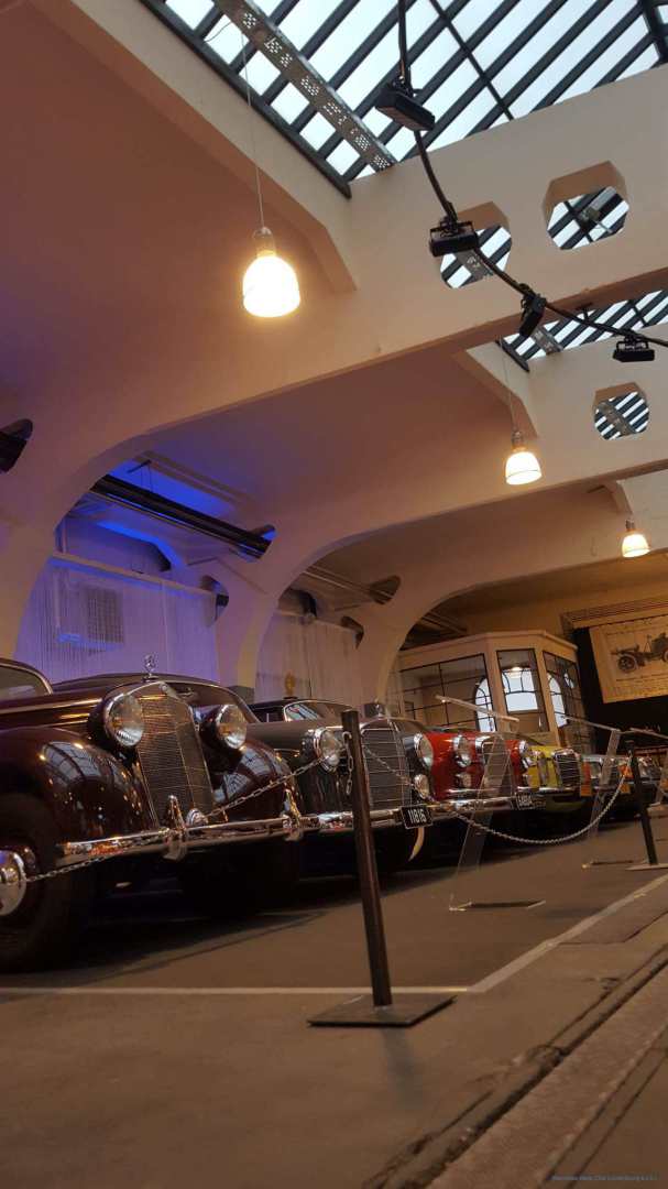 Nachdem das Museum Anfang November 2020 ausgeräumt war, wur- den die Handwerker aktiv und ein der Marke entsprechender Hinter- grund wurde im Museum aufgebaut: Bild- und Filmmaterial aus dem Archiv von Daimler-Benz, historische Aufnahmen der alten Wagenerei aus Diekirch, zur Verfügung gestellt durch die Familie Meris-Wagner, sowie Beleuchtungsmaterial, um die einzelnen Fahrzeuge ins rechte Licht zu setzen.
