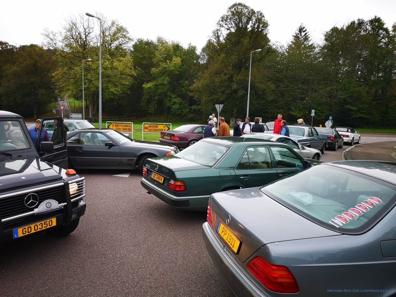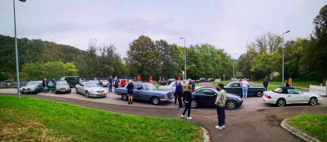 Vorstandsmitglied Patrick Wehr hatte mit genügend zeitlichem Abstand die Route ausgewählt und das Roadbook erstellt. Das war gegen Ende des Kollektivurlaubs im Bauwesen – da war die Welt der Straßen noch in Ordnung. Als wir einige Tage vor der Aus- fahrt die Strecke zur Kontrolle noch einmal abfuhren, waren die fleißigen Arbeiter des Straßenbaus aus der Urlaubsstarre erwacht, und die erste Hälfte der Strecke war mit Ab- sperrungen und Umleitungen gespickt. Da blieb nur noch eins: Wieder von vorne anfangen und eine neue Route suchen, was nach ei- nigem Hin und Her dann schließlich gelang. Der gewählte Tag war im wahrsten Sinne des Wortes getrübt, denn das Wetter bescher- te uns Nebel und Regen. Die 52 Teilnehmer wurden bei einsetzender Herbstwitterung am Park & Ride Junglinster, wo der Start erfolgte, ordentlich abgekühlt und angefeuchtet. Zu- sätzlich musste sich unser Clubvorsitzender Jean-François Zimmer mit einer Hiobsbotschaft an uns wenden. Unser langjähriges Mitglied und regelmäßiger Teilnehmer an unseren Ausfahrten, Raoul Roos, der auch zu dieser Tour angemeldet war, war nur wenige Tage vorher völlig unerwartet gestorben.