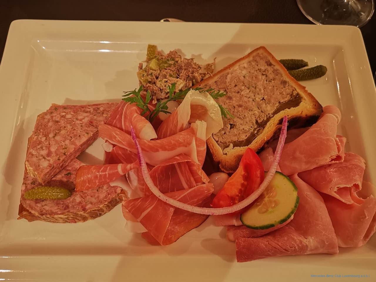 Nach diesem zum Nachdenken anregenden Zwischenstopp setzte sich unsere Fahrzeugkolonne wieder in Bewegung, wobei allerdings kurz nach Diekirch für einen der Teilnehmer die Fahrt wegen eines Defektes am Fahrzeug abrupt zu Ende war. Nachdem sein Auto zur nahen Werkstatt abgeschleppt worden war, konnte der Fahrer dann doch als Passagier bei anderen Teilnehmern die Tour zu Ende mitfahren. Nach einer mit 105 km etwas längeren Teiletappe, legten wir in Heinerscheid eine Pause ein, wo wir im Restaurant „Cornelyshaff “ zu Mittag aßen.
