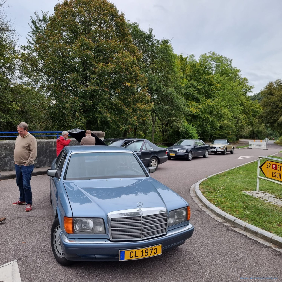 Nach einer kurzen Gedenkminute an unseren Clubfreund konnte die Hierschttour dann trotz bedrückter Stimmung starten. Auf gewundenen Wegen ging die Tour über Berg, Manternach, Bech, Breidweiler und Christnach in Richtung Fels. Auf rund 5 km kreuzten wir die „Luxembourg Classic“, die auch an diesem Tag dieselbe Gegend erkundete und in Fels einen Kontrollpunkt eingerichtet hatte, wo die Teilnehmer einen Stempel ins Fahrtenbuch bekamen. Das war eine nette Abwechslung für uns, und so bekamen wir einen Großteil der teilnehmenden Fahrzeuge dieser Veranstaltung zu Gesicht.