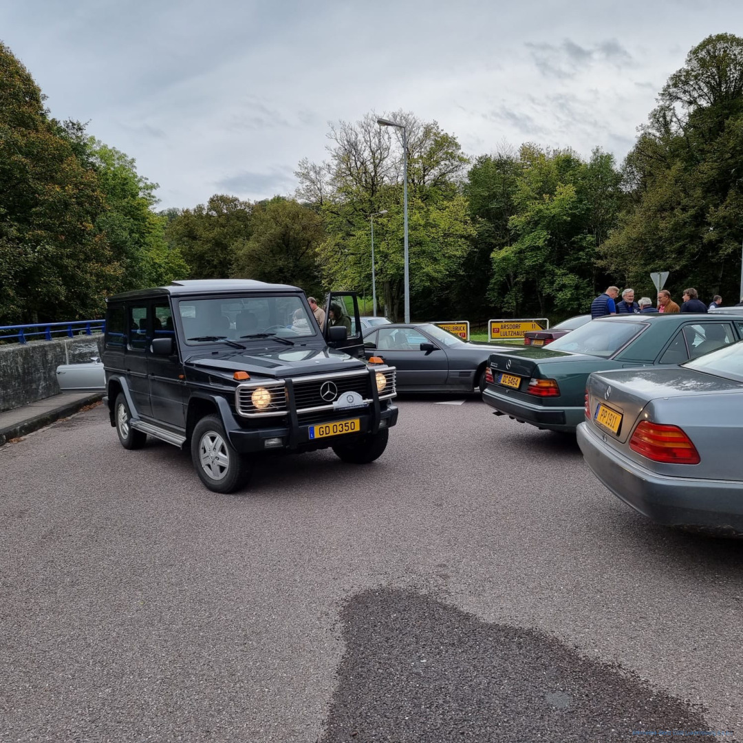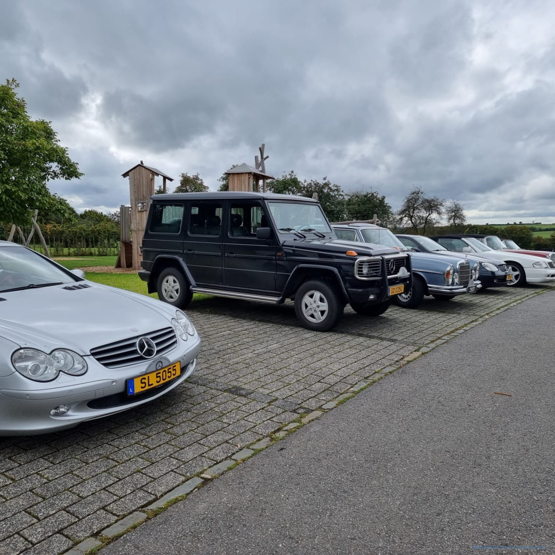 Nach diesem zum Nachdenken anregenden Zwischenstopp setzte sich unsere Fahrzeugkolonne wieder in Bewegung, wobei allerdings kurz nach Diekirch für einen der Teilnehmer die Fahrt wegen eines Defektes am Fahrzeug abrupt zu Ende war. Nachdem sein Auto zur nahen Werkstatt abgeschleppt worden war, konnte der Fahrer dann doch als Passagier bei anderen Teilnehmern die Tour zu Ende mitfahren. Nach einer mit 105 km etwas längeren Teiletappe, legten wir in Heinerscheid eine Pause ein, wo wir im Restaurant „Cornelyshaff “ zu Mittag aßen.