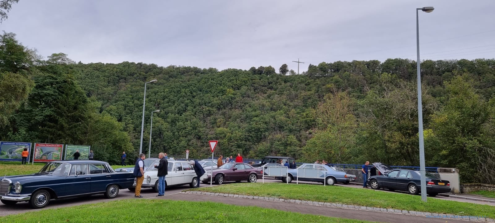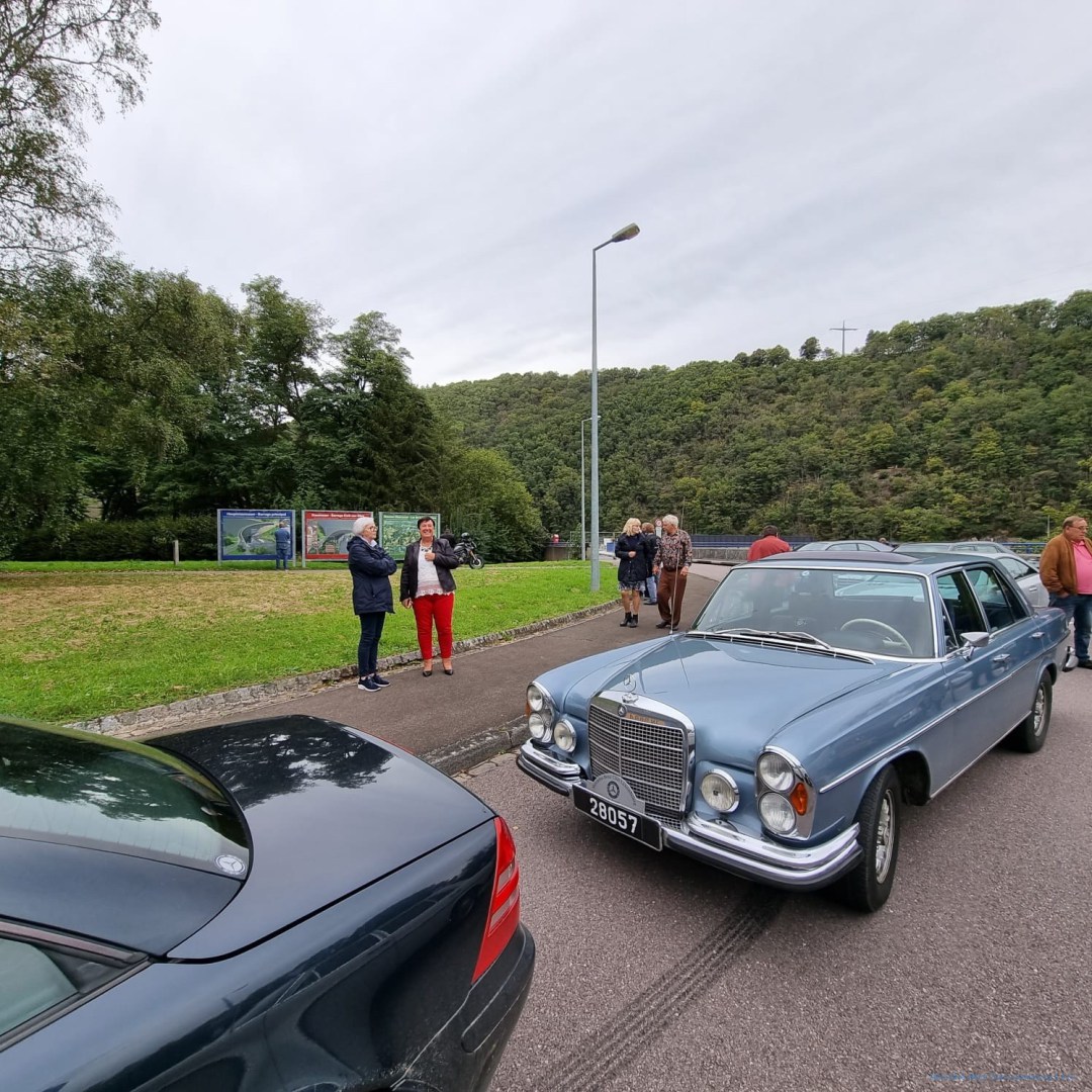 Die Nachmittagsetappe verlief planmäßig. Der Nieselregen des Vormittags hatte nicht lange angehalten, aber der Himmel blieb den ganzen Tag trüb. Leider konnten wir die schönen Aussichten nicht so genießen wie bei gutem Wetter. Clerf, Drauffelt und Wiltz lagen auf unserer Strecke, bevor wir Esch- Sauer erreichten, wo wir an der Staumauer eine Pause einlegten, um uns die Beine zu vertreten und Kontakte zu den Clubfreunden zu pflegen.