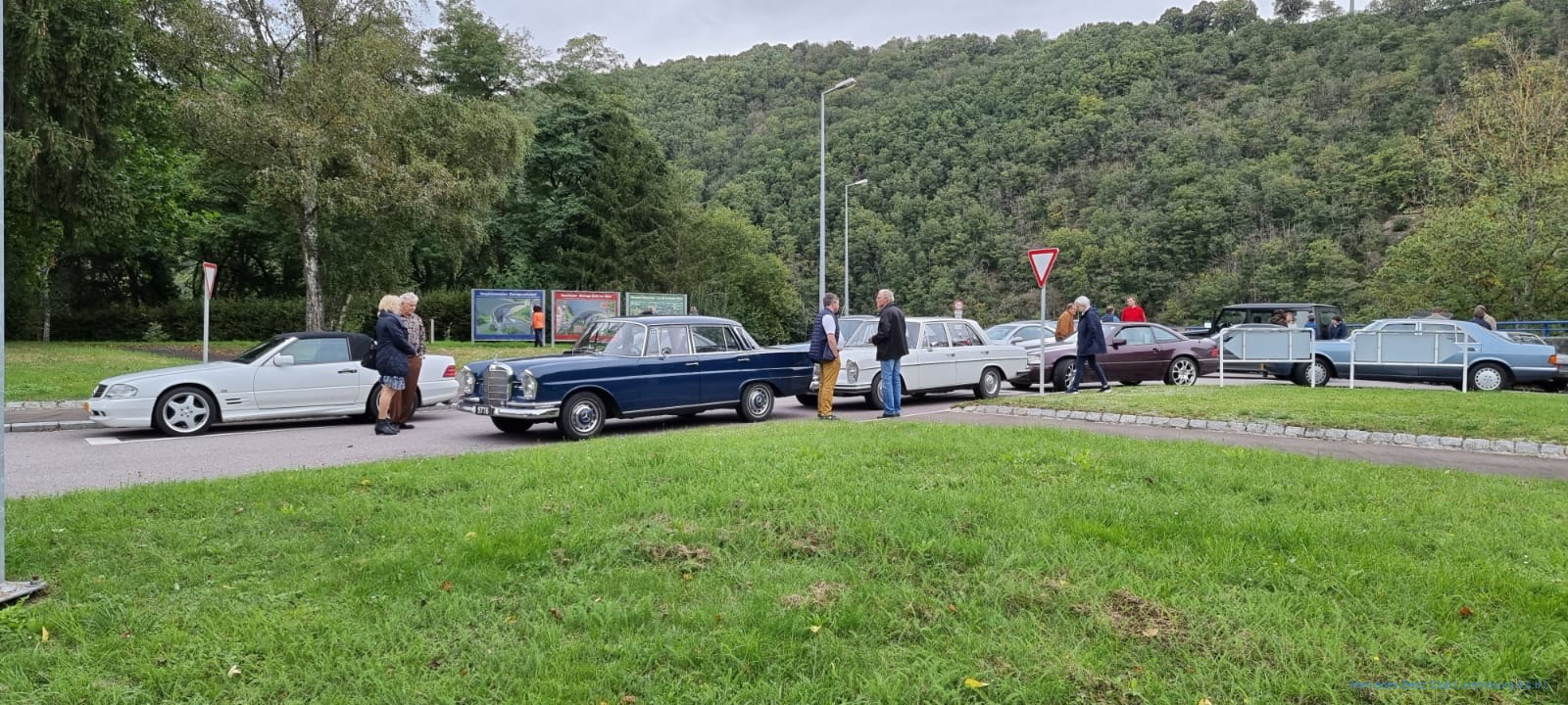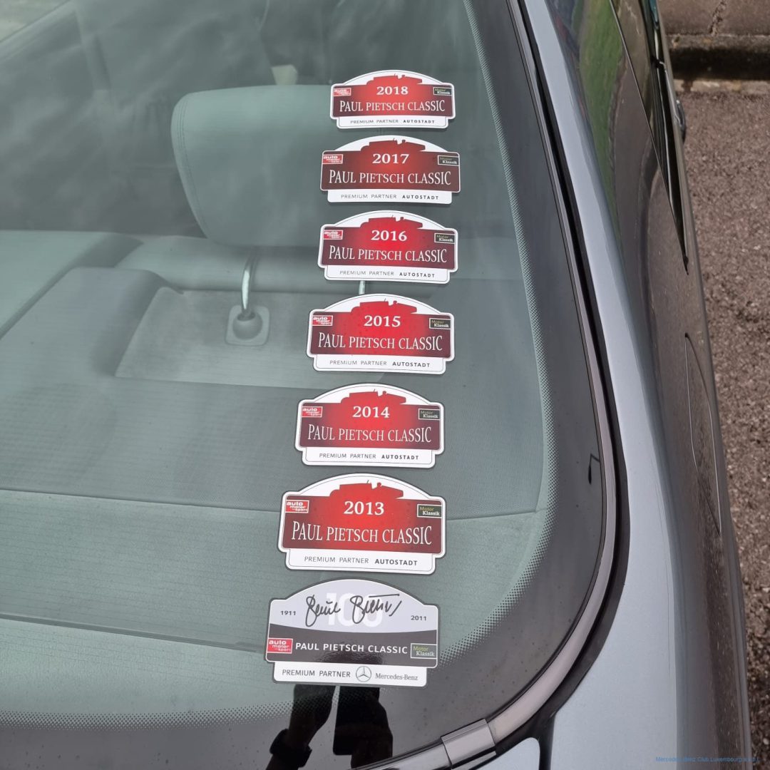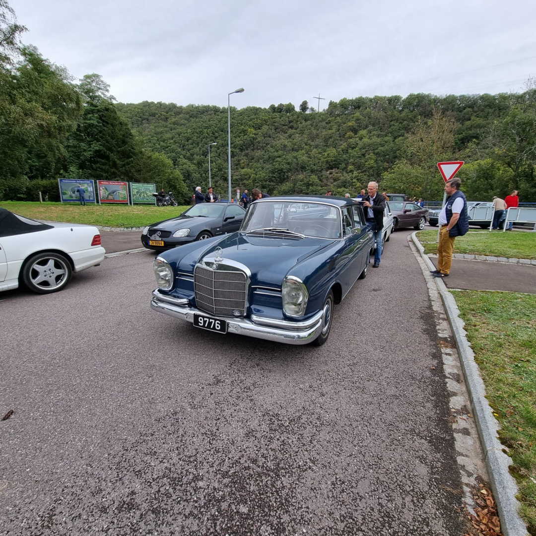 Nach einer kurzen Gedenkminute an unseren Clubfreund konnte die Hierschttour dann trotz bedrückter Stimmung starten. Auf gewundenen Wegen ging die Tour über Berg, Manternach, Bech, Breidweiler und Christnach in Richtung Fels. Auf rund 5 km kreuzten wir die „Luxembourg Classic“, die auch an diesem Tag dieselbe Gegend erkundete und in Fels einen Kontrollpunkt eingerichtet hatte, wo die Teilnehmer einen Stempel ins Fahrtenbuch bekamen. Das war eine nette Abwechslung für uns, und so bekamen wir einen Großteil der teilnehmenden Fahrzeuge dieser Veranstaltung zu Gesicht.