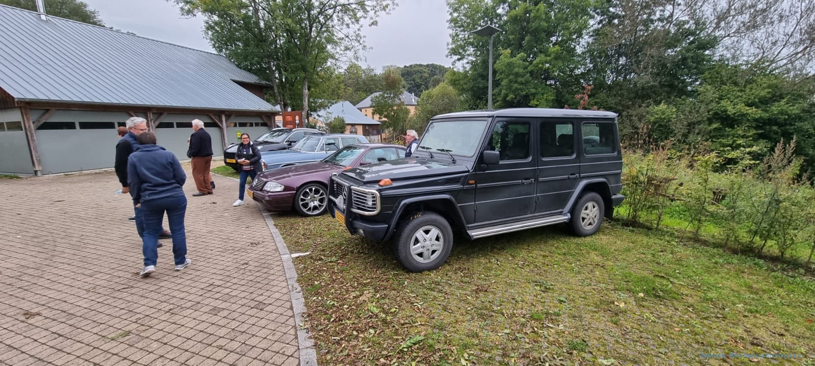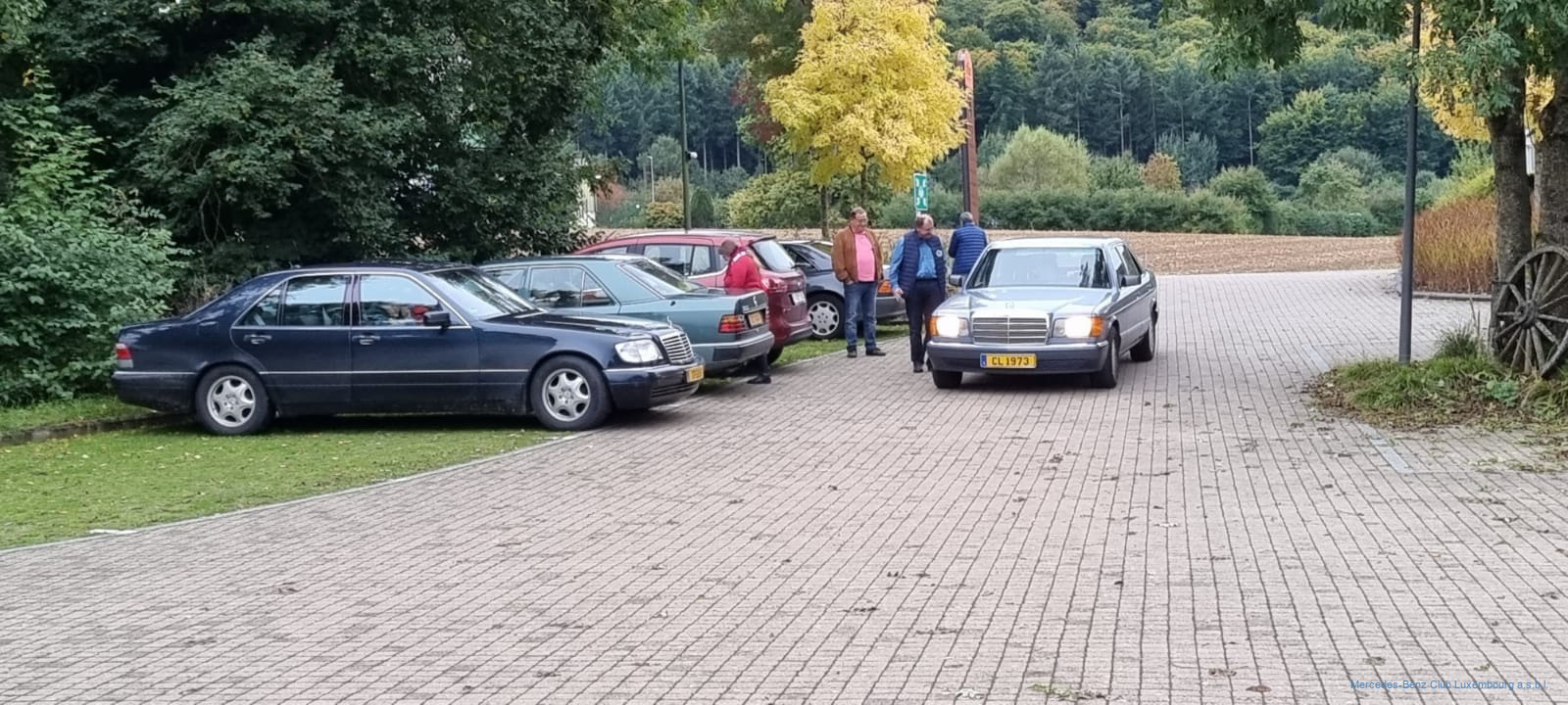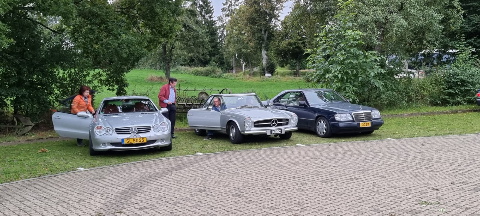 Nach diesem zum Nachdenken anregenden Zwischenstopp setzte sich unsere Fahrzeugkolonne wieder in Bewegung, wobei allerdings kurz nach Diekirch für einen der Teilnehmer die Fahrt wegen eines Defektes am Fahrzeug abrupt zu Ende war. Nachdem sein Auto zur nahen Werkstatt abgeschleppt worden war, konnte der Fahrer dann doch als Passagier bei anderen Teilnehmern die Tour zu Ende mitfahren. Nach einer mit 105 km etwas längeren Teiletappe, legten wir in Heinerscheid eine Pause ein, wo wir im Restaurant „Cornelyshaff “ zu Mittag aßen.