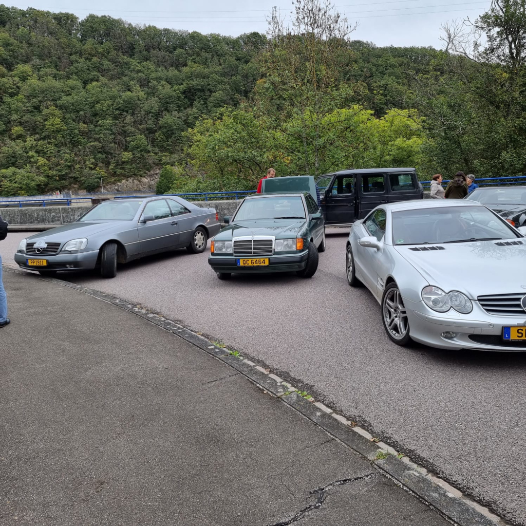 Nach einer kurzen Gedenkminute an unseren Clubfreund konnte die Hierschttour dann trotz bedrückter Stimmung starten. Auf gewundenen Wegen ging die Tour über Berg, Manternach, Bech, Breidweiler und Christnach in Richtung Fels. Auf rund 5 km kreuzten wir die „Luxembourg Classic“, die auch an diesem Tag dieselbe Gegend erkundete und in Fels einen Kontrollpunkt eingerichtet hatte, wo die Teilnehmer einen Stempel ins Fahrtenbuch bekamen. Das war eine nette Abwechslung für uns, und so bekamen wir einen Großteil der teilnehmenden Fahrzeuge dieser Veranstaltung zu Gesicht.