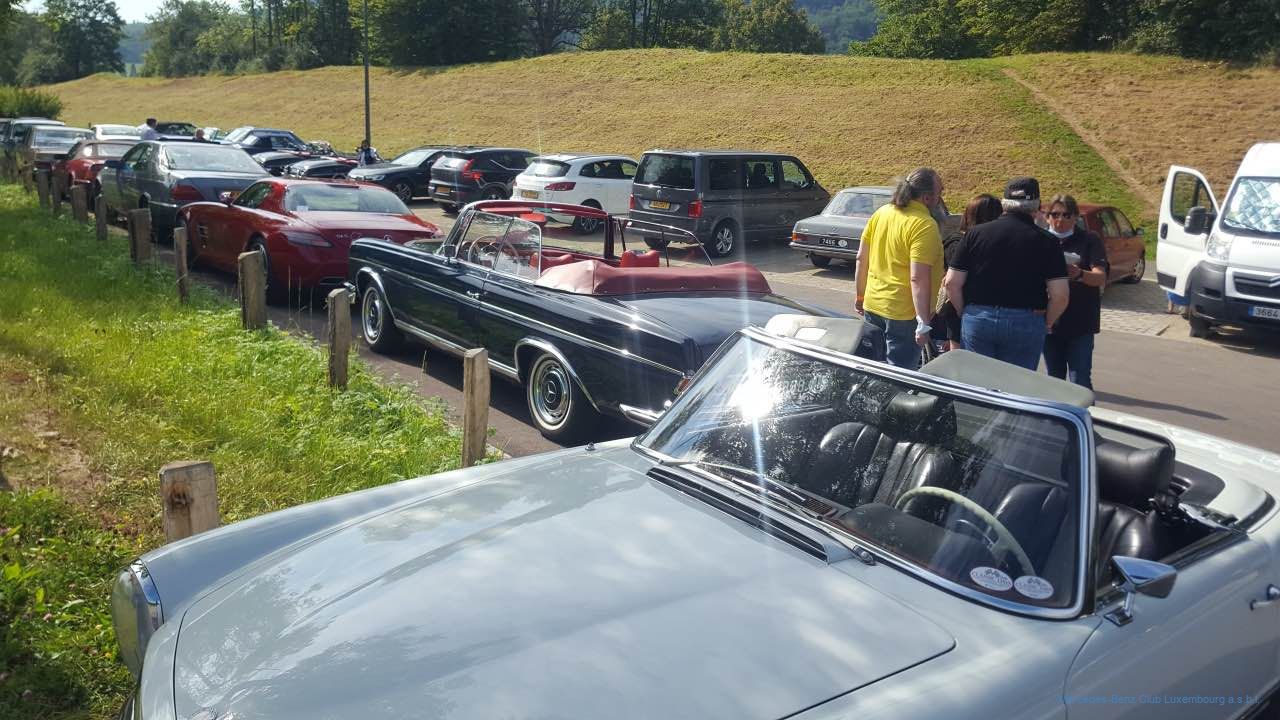 Unserer langjährigen Gepflogenheit entspre- chend fand auch dieses Jahr unsere „Rentrées- tour“ in der ersten Septemberhälfte statt. Die von Gérard Reis, Raymond Echternach und Jean-François Zimmer organisierte Rundfahrt startete am Sonntag, dem 5. September 2021 an der Kontrollstation in Lorentzweiler. Blauer Himmel und gute Stimmung unter Freunden waren das Erfolgsrezept für eine genussvolle Tour über Land. Gestartet wurde erstmals im Halbminutentakt, um die Fahrzeugkolonne etwas auseinander zu ziehen, wobei die Alleinfahrer und die weniger Roadbook-Erfahrenen sich aber sogleich an den Vordermann anhängen konnten.