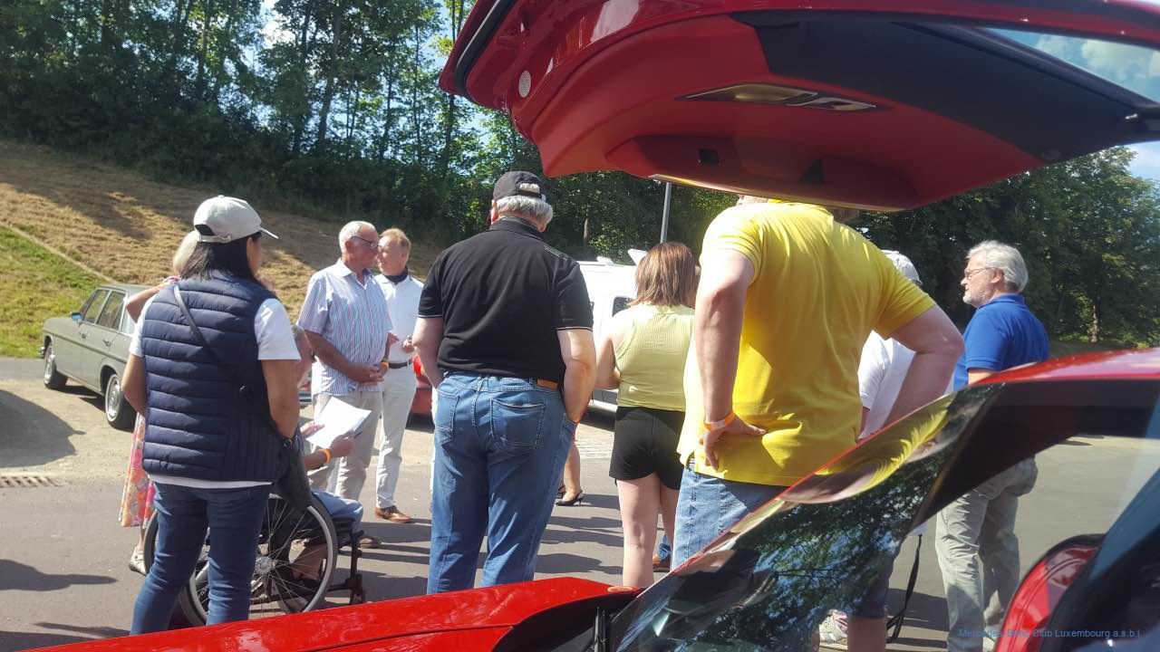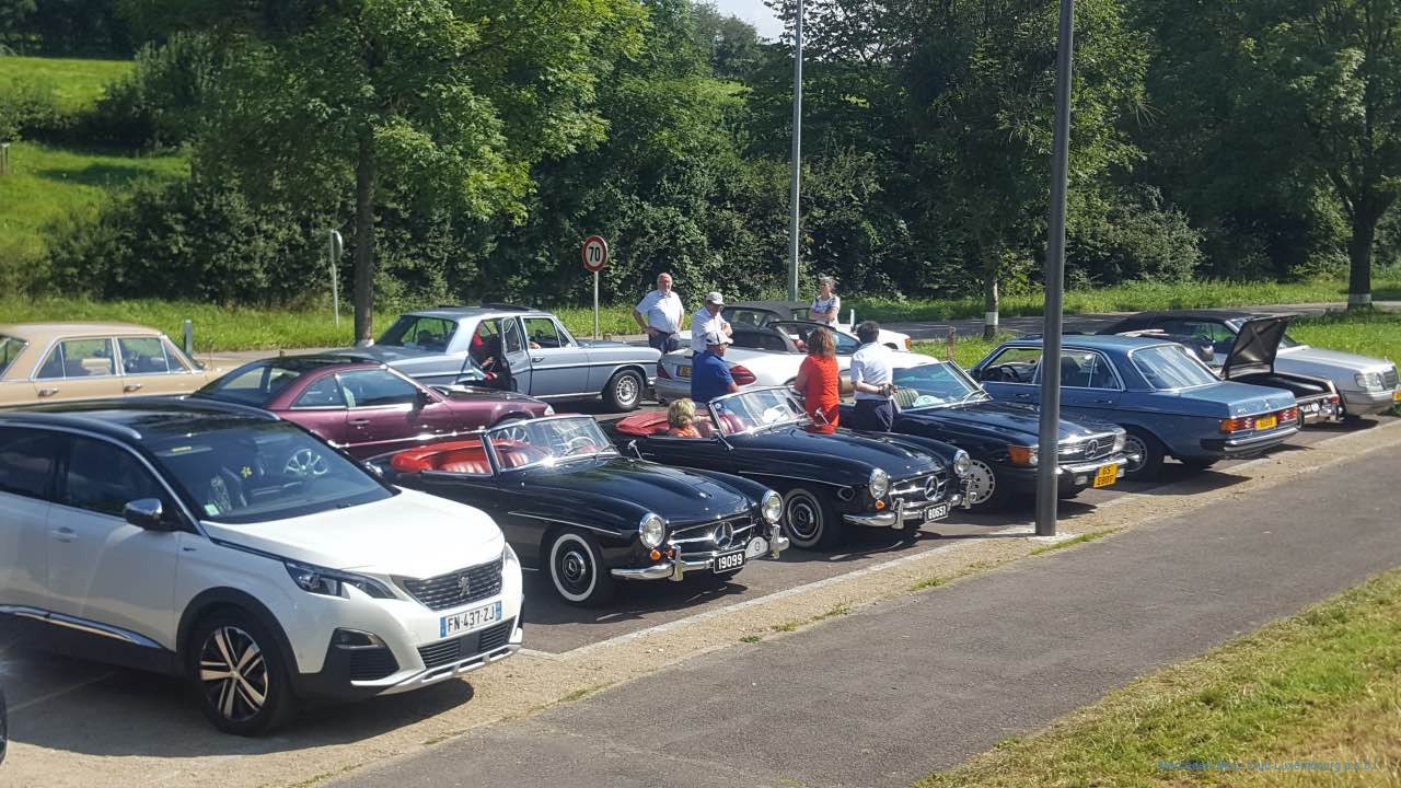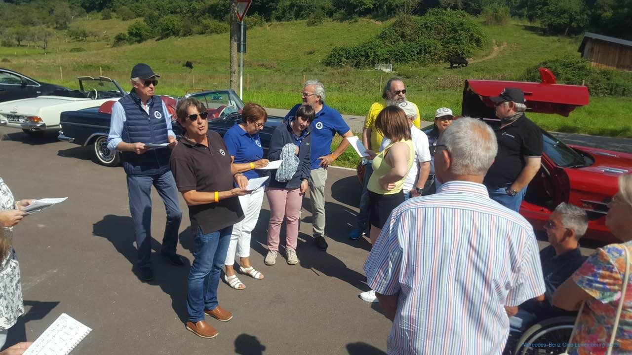 Unserer langjährigen Gepflogenheit entspre- chend fand auch dieses Jahr unsere „Rentrées- tour“ in der ersten Septemberhälfte statt. Die von Gérard Reis, Raymond Echternach und Jean-François Zimmer organisierte Rundfahrt startete am Sonntag, dem 5. September 2021 an der Kontrollstation in Lorentzweiler. Blauer Himmel und gute Stimmung unter Freunden waren das Erfolgsrezept für eine genussvolle Tour über Land. Gestartet wurde erstmals im Halbminutentakt, um die Fahrzeugkolonne etwas auseinander zu ziehen, wobei die Alleinfahrer und die weniger Roadbook-Erfahrenen sich aber sogleich an den Vordermann anhängen konnten.