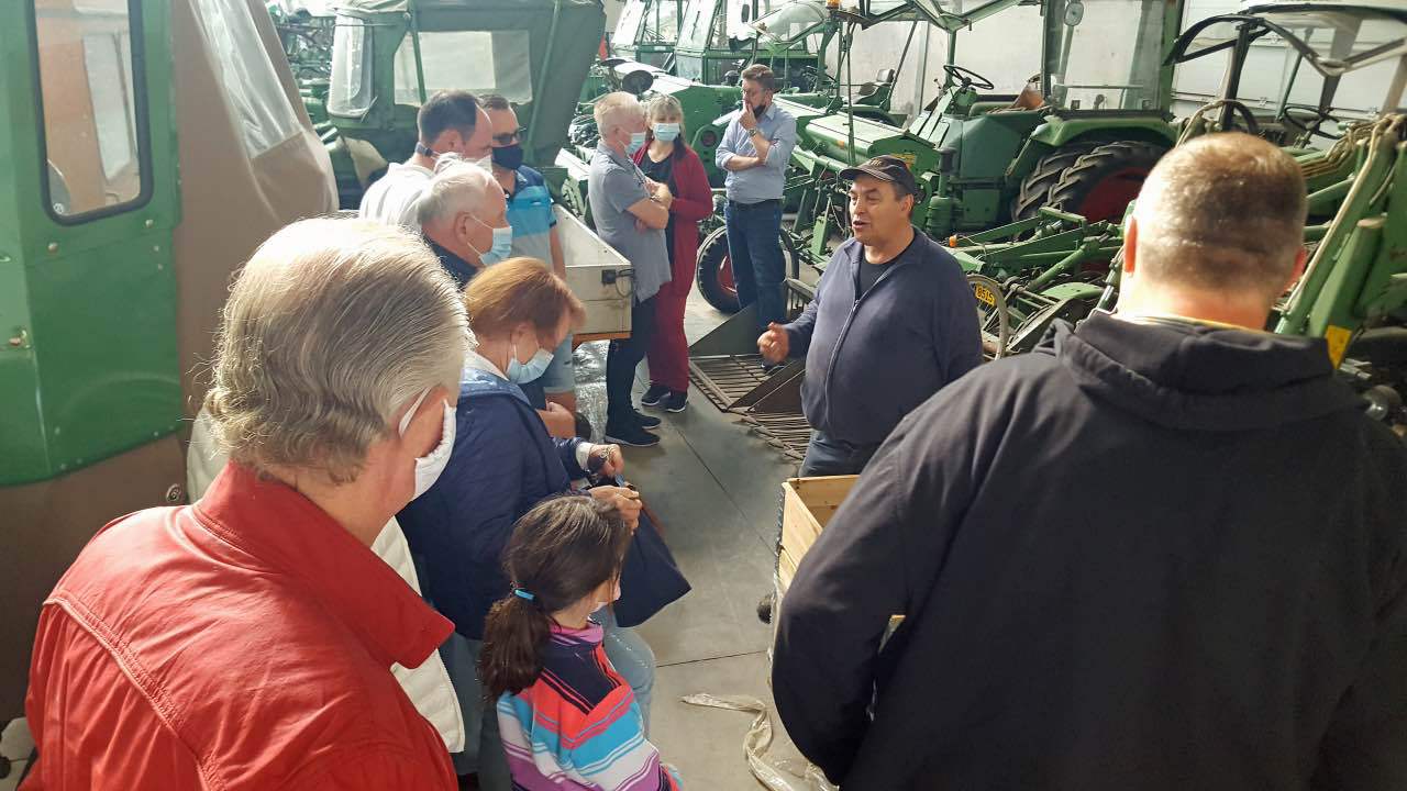 Die erste Etappe der Besichtigung galt dem beruflichen Aspekt, nämlich dem eigentlichen Lohnbetrieb mit seinem riesigen Fuhrpark an landwirtschaftlicher Großtechnik im Agrar-, Erdbau und Kommunalbereich. Wir erfuhren, dass es sich hier um einen der größten Betriebe seiner Art in der Region handelt, der wegen seiner Kompetenzen und seines breiten Maschinenangebots weit über die Landesgrenzen hinaus bekannt ist. Nicht nur die Ausmaße der riesigen Maschinenhalle waren beindruckend, sondern auch die Vielfalt der Maschinen und die ganzen technischen Anlagen, die für den reibungslosen Ablauf sämtlicher Dienstleistungen dieses Sektors notwendig sind.