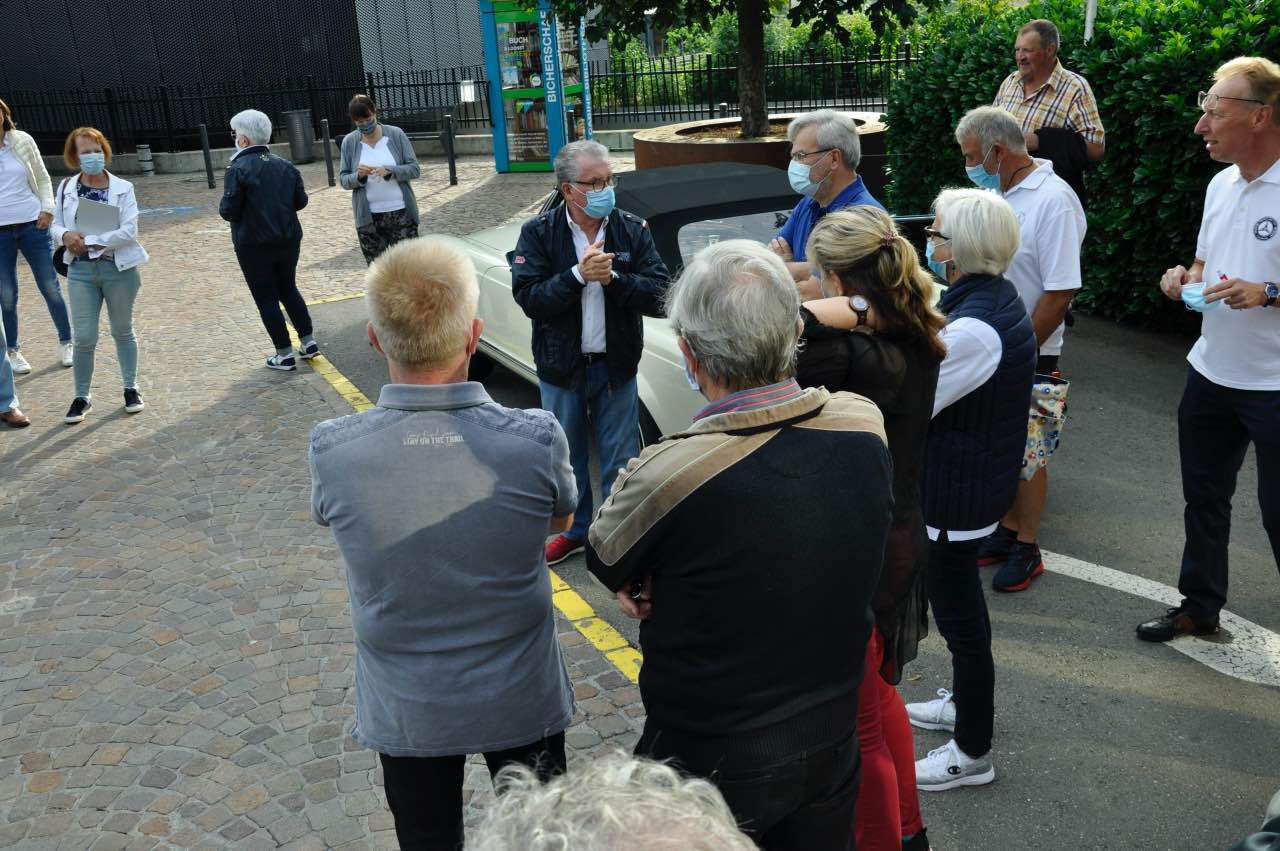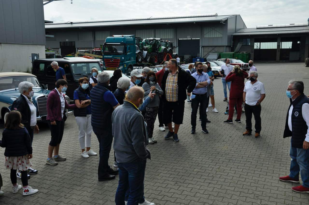 Am Sonntag, den 3. und 10. Juli 2021 waren jeweils 15 Teams mit ihren blank polierten Fahrzeugen am Rathaus in Walferdingen gestartet. Das Wetter war an beiden Tagen nicht gerade hochsommerlich, aber trotz- dem akzeptabel und Mützen oder Regenschirme, wenn auch in Reichweite, mussten nicht in den Einsatz kommen. Vor uns lagen wie mit dem Lineal gezogene 69 km, die wir über die Hauptstrassen Richtung Norden auf direktem Wege zurücklegten, um rechtzeitig beim Lohnunternehmen Reiff in Ulflingen anzukommen. Der Hausherr und seine Mitarbeiter hatten uns in 2 Gruppen aufgeteilt, um uns durch die großen Abteilungen der weitläufigen Anlagen zu führen.