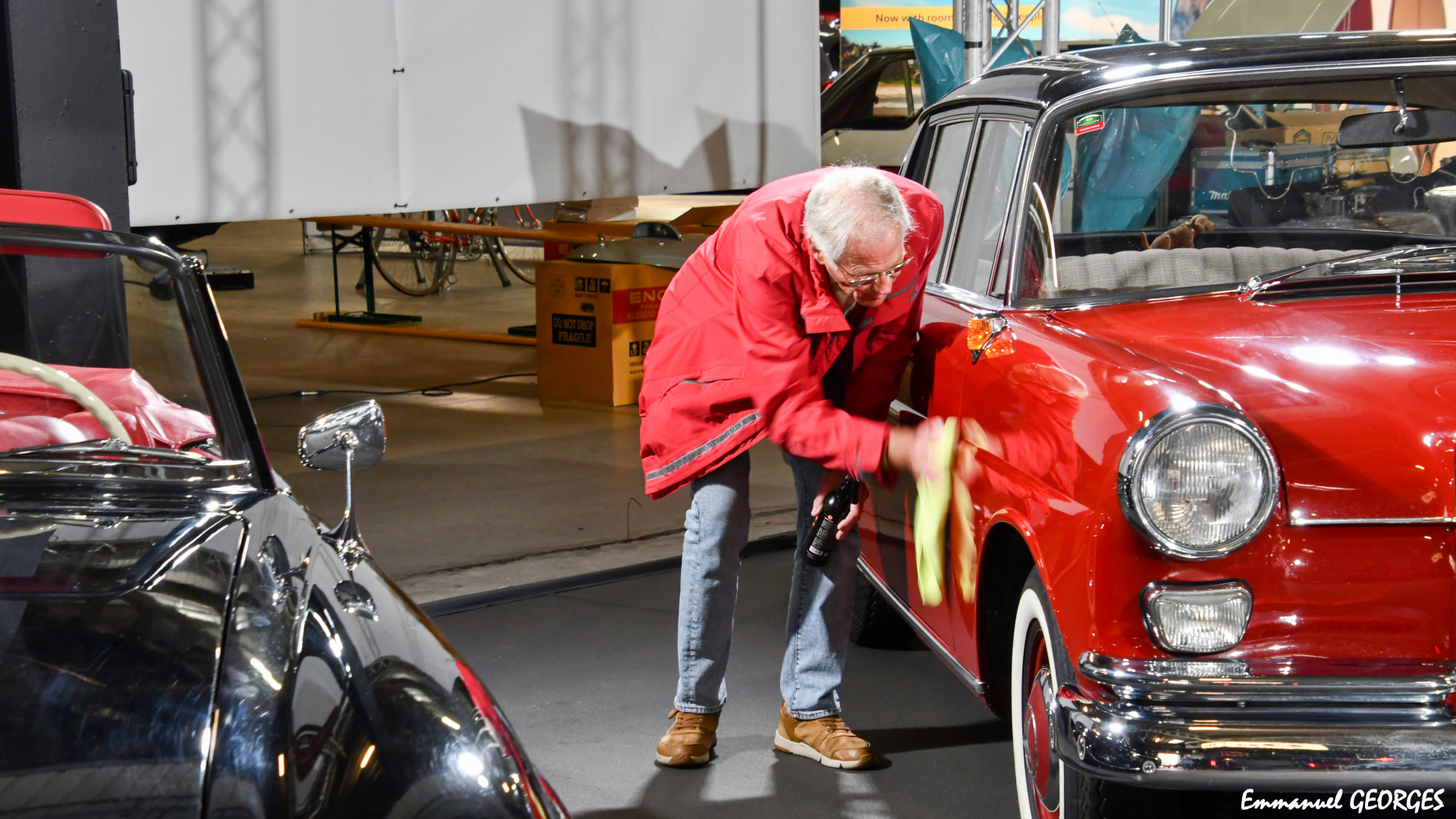 De Stand ass amenagéiert ginn, d’Autoe sinn een nom aneren erakomm fir esou wei geplangt ob hier jeeweileg Platz gesat ze ginn. Nodeems dann eng leschte Kéier Hand ugeluecht ginn ass fir ze poléieren wor alles prett fir dann ab 14:00 déi eicht Visiteuren ze empfänken.