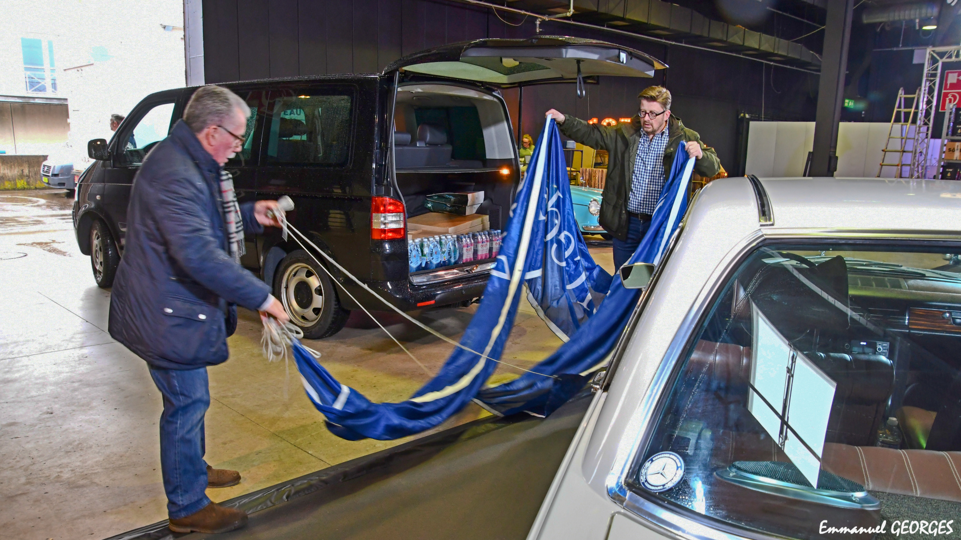 De Stand ass amenagéiert ginn, d’Autoe sinn een nom aneren erakomm fir esou wei geplangt ob hier jeeweileg Platz gesat ze ginn. Nodeems dann eng leschte Kéier Hand ugeluecht ginn ass fir ze poléieren wor alles prett fir dann ab 14:00 déi eicht Visiteuren ze empfänken.