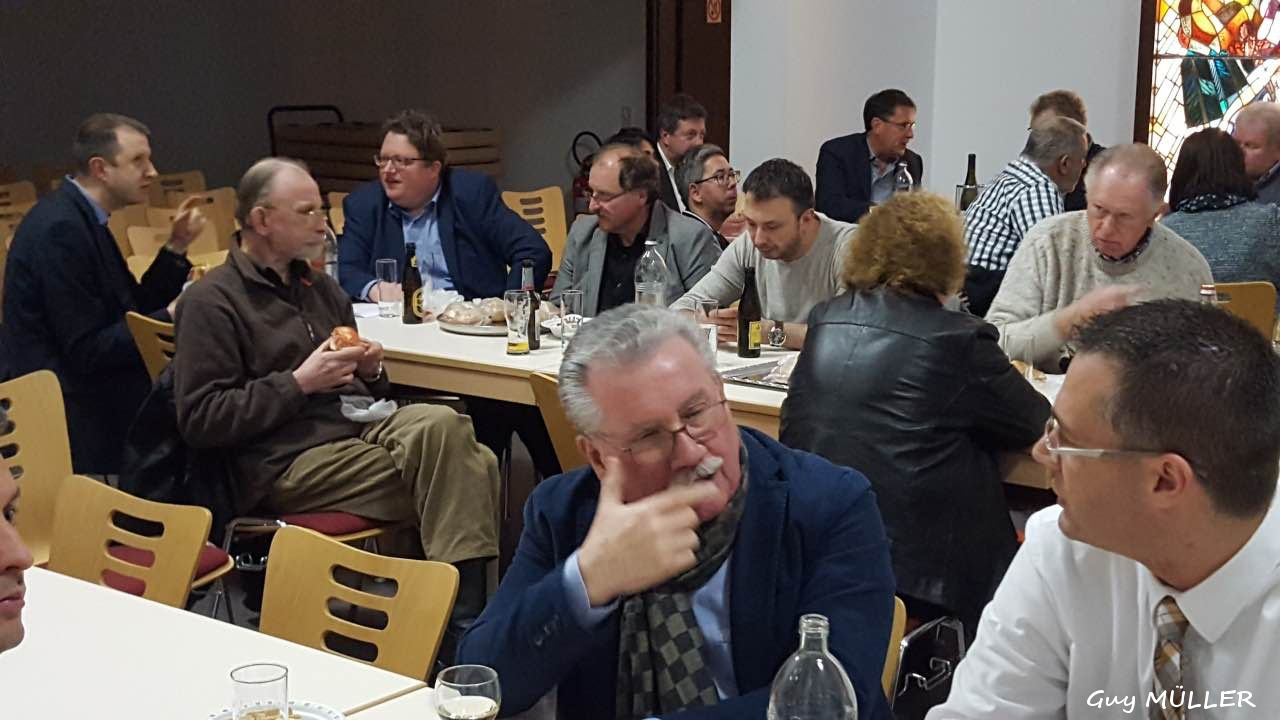 Nach Begrüßung der Teilnehmer und kurzer Ansprache von Präsident Jean-François Zimmer wurde der gut gefüllte Akivitätsbericht des vergangenen Jahres von Sekretärin Angela Parlanti vorgetragen, gefolgt vom Finanzbericht durch den Kassierer Luis Parra. Eine gesunde Finanzsituation und gute Kassenführung wurden von den beiden Kassenrevisoren bestätigt, bevor die turnusgemäß ausscheidenden Vorstandsmitglieder per Akklamation einstimmig wieder gewählt wurden. Angesichts der guten Finanzlage bestand kein Anlass, den Jahresbeitrag von 75 € für das Jahr 2019 zu erhöhen.