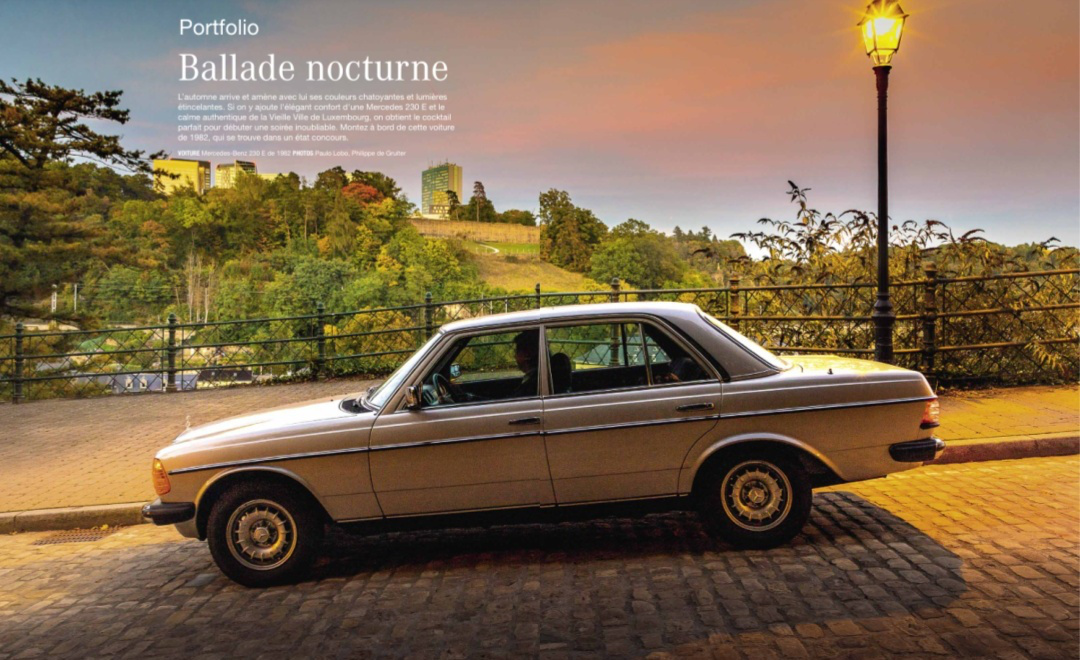 L’automne arrive et amène avec lui ses couleurs chatoyantes et lumières étincelantes. Si on y ajoute l’élégant confort d’une Mercedes 230 E et le calme authentique de la Vieille Ville de Luxembourg, on obtient le cocktail parfait pour débuter une soirée inoubliable. Montez à bord de cette voiture de 1982, qui se trouve dans un état concours.