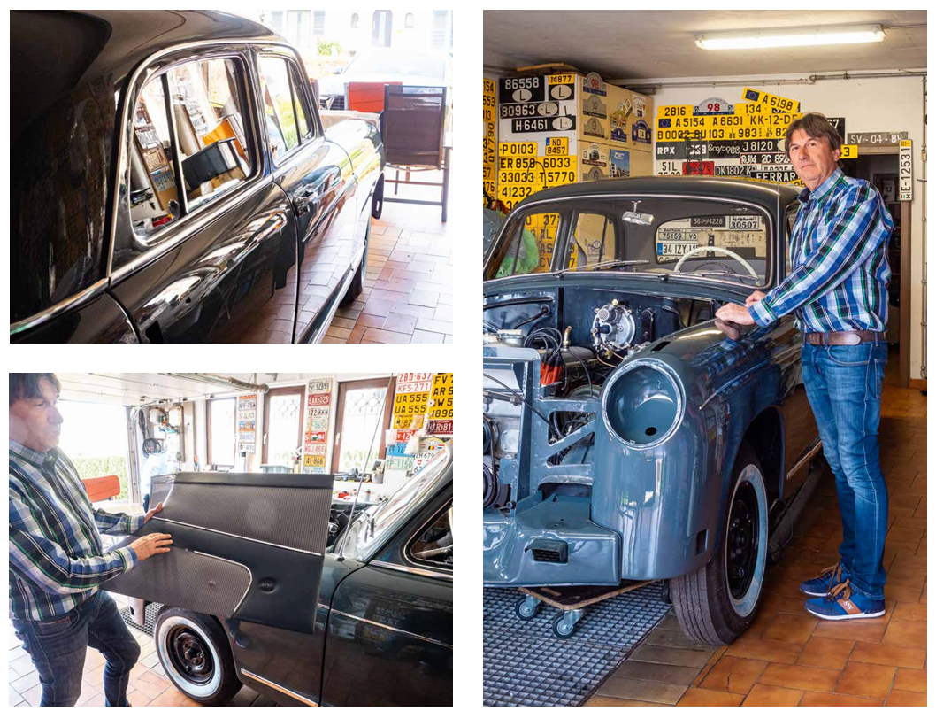 La dernière fois que nous l’avons vu, c’était en mars 2021, Gérard Reis était à mi-chemin de la restauration de la Mercedes 220 S W180 qu’il avait acquise deux ans auparavant, au printemps 2019. Quatre saisons plus tard, nous le retrouvons dans son garage privé. Gérard a le regard brillant, la dernière ligne droite de la remise en état se profile distinctement devant lui. Bientôt, cet été peut-être, le véhicule pourra enfin se livrer à de belles balades sur les routes du Luxembourg.